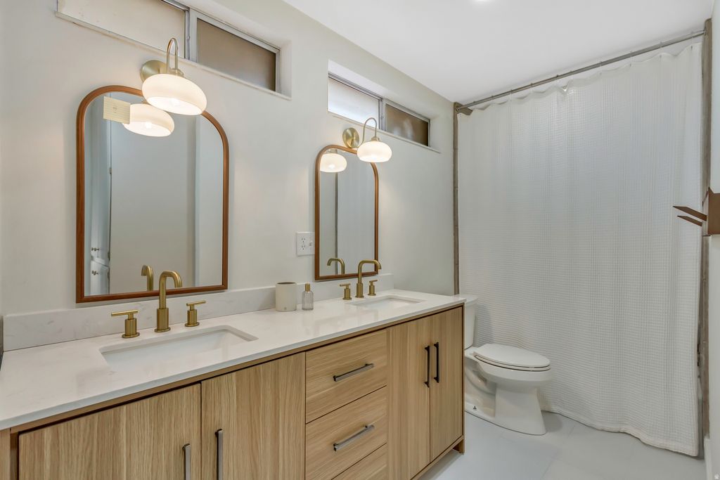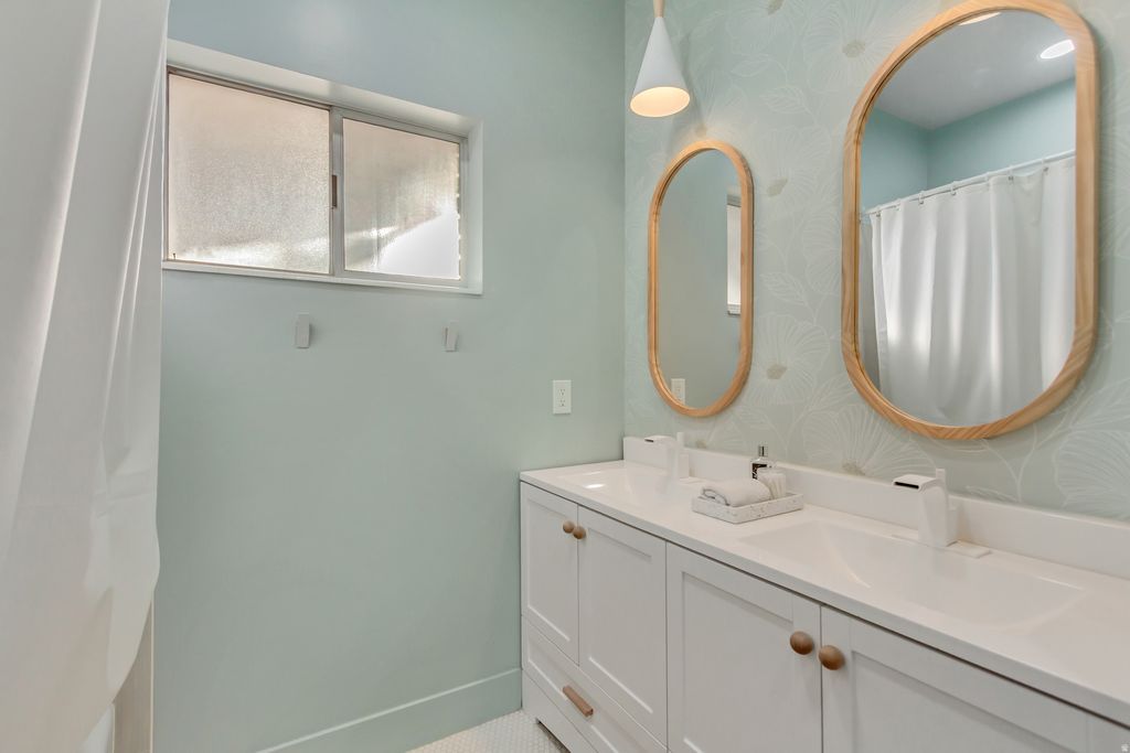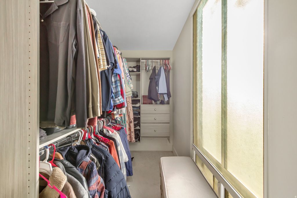 Step into a stunning mid-century modern gem thoughtfully inspired by Frank Lloyd Wright. This one-of-a-kind home showcases classic mid-century lines, soaring structural double trusses and a seamless blend of architectural charm with modern updates. Recently renovated, the home features designer paint, new carpet, authentic oak hardwood flooring, durable luxury vinyl plank flooring in the basement, a new water heater, updated plumbing, and updated electrical. A functional mudroom addition and butler's pantry enhance everyday living, while two laundry hookups (stackable washers and dryers included) offer flexibility and convenience. With 6 bedrooms and 4 bathrooms, (2 walk-in showers) two main suites with en-suite bathrooms, two fully equipped kitchens, and oversized closets, this home provides exceptional space for comfortable living, entertaining, or multi-generational needs. The cold storage features custom shelving crafted from vintage bleachers sourced from a local high school, adding a piece of local history and character. The home contains Authentic mid-century slat accents throughout, original planter box on entry and a beautifully restored original conversation pit creating a stunning focal point that celebrates true mid-century entertaining and design. Featuring an oversized covered carport designed to comfortably accommodate up to four vehicles, offering excellent protection from the elements while maintaining the home's authentic architectural style. Complementing the property is a fully insulated shed equipped with electricity and built-in shelving, providing outstanding space for hobbies, storage, workshop use, or creative projects. Stretching the full length of the home, the back porch frames breathtaking views, while expansive windows capture unforgettable sunsets from nearly every angle. Nestled on Bountiful's coveted East Bench This rare mid-century treasure combines timeless design, thoughtful updates, and functional versatility in a highly desirable setting