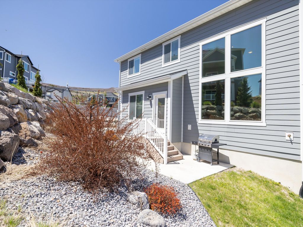 Surrounded by stunning mountain views, this impressive two-story home in Draper's Hidden Canyon Estates offers four bedrooms and three bathrooms on a beautifully landscaped 0.25-acre lot. Thoughtfully designed terracing and a half-court basketball area enhance the outdoor space, with popular biking and hiking trails just steps from your front door. Inside, the open-concept main level features wood floors, vaulted ceilings, and large windows that fill the home with natural light. The timeless kitchen is a chef's dream, complete with custom lighting, stainless steel appliances, and a generously sized pantry. All four bedrooms are on the second floor, along with two full baths and a highly sought-after second-story laundry room. The spacious basement is framed, insulated, and ready for your personal finishing touches. The two-car garage is professionally finished with an epoxy floor and overhead rack storage-ideal for all your gear and toys to enjoy the area's outdoor recreation. This prime location is just 30 minutes from Salt Lake City International Airport and within 45 minutes of some of Utah's premier ski resorts, trails, and canyons. Buyer to verify all property information, boundaries, and documents.