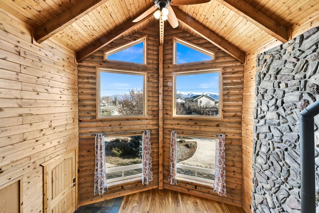 This stunning two-story cabin-style home offers an abundance of space and sits on a generous parcel of land, creating the perfect blend of comfort, charm, and opportunity. Located in the heart of Davis County, this property invites you to dream big and let your creativity run wild. Large windows throughout the home frame breathtaking views of the Wasatch Mountains, filling the space with natural light and scenic beauty. With the potential for a basement apartment, this home offers exciting income-property possibilities. Fresh paint and brand-new carpet make it easy to move right in and add your own personal style and finishing touches. Spend summer days lounging by the swimming pool with family and friends, creating memories that will last a lifetime. The oversized garage is ideal for extra storage, hobbies, or tinkering with your favorite toys year-round. With endless possibilities and room to grow, this property is ready to become the perfect homestead you've been dreaming of. This Home is Easy to Show and Easy to Love.