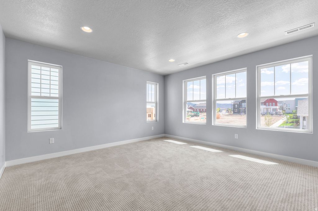 Discover the charm and efficiency of this Lassen Craftsman home! Featuring sleek gray laminate cabinets, durable quartz countertops, gorgeous tile backsplash and stainless steel gas appliances, the kitchen is designed for both function and style. The open-concept layout is grounded by a mix of laminate hardwood, tile, and carpet flooring, enhanced by warm two-tone paint and classic Craftsman-style base and casing. Additional highlights include can lighting, wood railing at the stairway, an energy efficient tankless water heater and Christmas light outlets for added convenience. The owner's suite is a retreat with cultured marble shower surrounds, creating a spa-like finish. Comes fully landscaped and is located in a great Daybreak area surrounded by parks, trails, shopping and more!