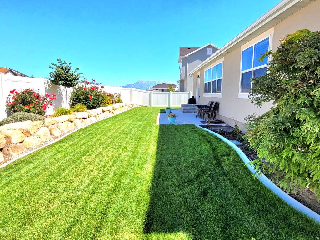 This spacious, like-new rambler is the perfect home for a growing family, a single pacesetter or any size group in between. The beautiful main floor features a large open-concept kitchen, dining and family room space, with a vaulted ceiling and large windows for plenty of natural light. The roomy main suite includes a large walk-in closet and a private bathroom with separate shower and soaking tub. The full basement has a large finished family room, with space for storage and additional living areas, as needed. Ideally located at the top of a peaceful loop, this attractive south-facing house is fully fenced and landscaped with shady trees, flowering shrubbery and just-the-right-size lawn surrounding a large patio for relaxing and entertaining. Neighborhood walking and biking paths connect to parks and wildlife areas, while supercenter shopping is two minutes away. This truly is the best of Eagle Mountain! To see property, please contact, Denise @ 801-641-8195.