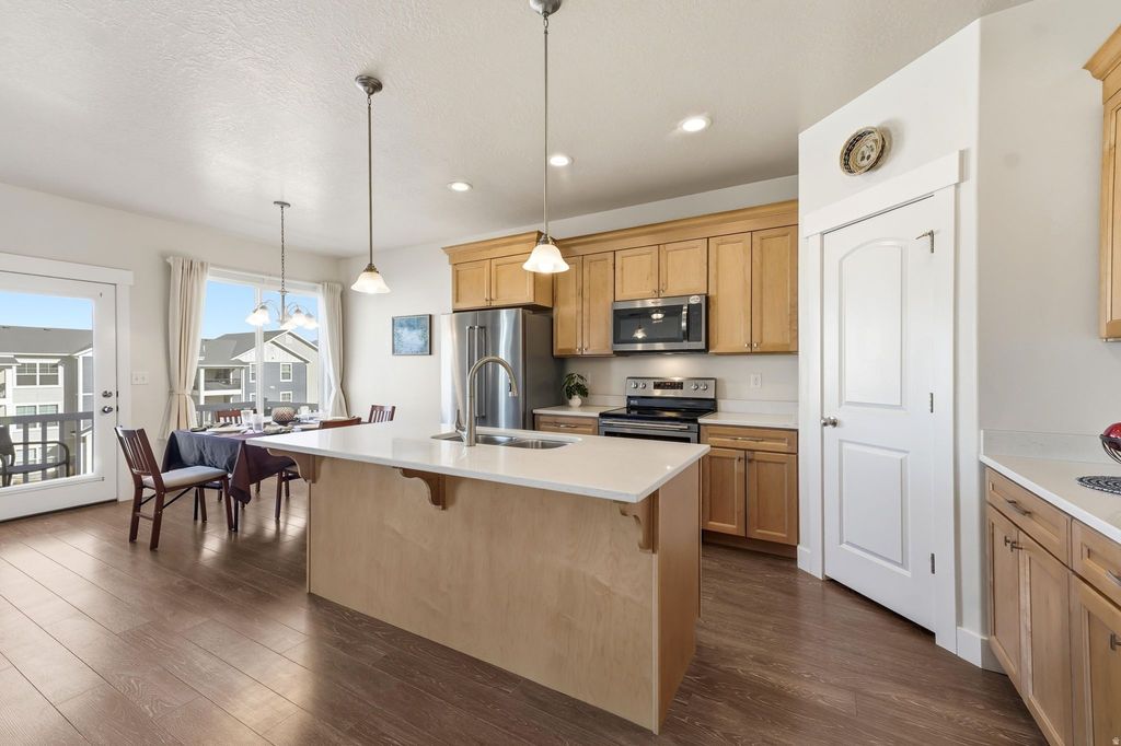 NO SHOWINGS BEFORE OPEN HOUSE ON SATURDAY 2/7, FROM 11-1. Tucked into the heart of Herriman, this beautifully maintained townhome checks every box-2280 square feet of thoughtfully designed living space, 3 spacious bedrooms, 2.5 baths (Piedrafina Marble in shower enclosure in Primary Bath), and a layout that flows effortlessly for everyday living and entertaining. Built in 2017, it still feels fresh, stylish, and move-in ready. You'll love waking up to stunning mountain and valley views and having some of the best shopping, dining, and everyday conveniences just minutes away. Whether you're relaxing in the light-filled living area, prepping meals in the modern kitchen, or enjoying your favorite beverage on the patio while the sun sets behind the mountains-this home offers both comfort and lifestyle. Other interesting amenities and community appeal include: Within Walking Distance is Lee's Grocery, Starbucks, multiple restaurants, Juniper Canyon Eastern Trailhead and Picnic area and Park (biking and hiking trails) and Mountain View Corridor Bike Trail. UTA Bus 126- Sentinel Ridge Blvd. Schools within walking distance include Real Salt Lake Academy High School, Providence Hall (K-12), Mountain Ridge High School, Juniper Elementary School, Ridge View Elementary and SLCC/UofU Herriman Campus. Within 5-15 drive is the Rosecrest Trail System, Butterfield Canyon, Butterfield Park (Rodeo), Black Ridge Reservoir and Trailhead, The Cove at Herriman Springs (fishing), Yellow Fork/Rose Canyon, Ice Ribbon-Herriman City Center, Sorenson Center Library, gyms, sport clubs, indoor golf, basketball, Vasa Fitness, Pickleball Club, Downtown Daybreak, Salt Lake Bees-Ballpark at America First Square, Mega Plex, Ice Skating, bowling, shopping-Mountain View Village, Cinemark, multiple dining options and coming soon shopping options include Trader Joes and Target. Come see for yourself why this isn't just a townhome-it's your next chapter. Square footage figures are provided as a courtesy estimate only and were obtained from county. Buyer is advised to obtain an independent measurement.