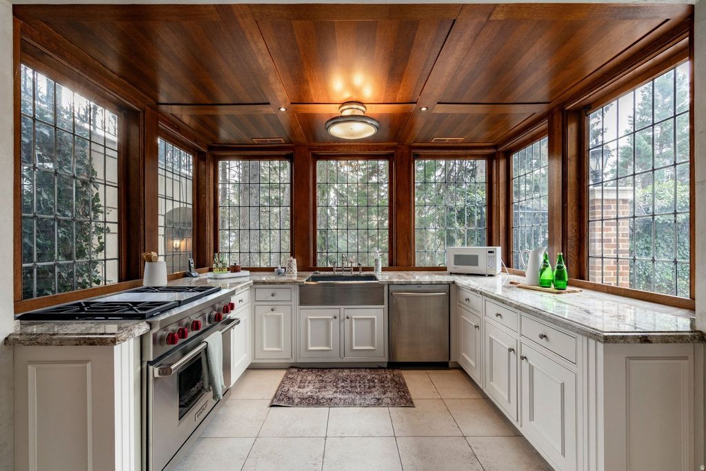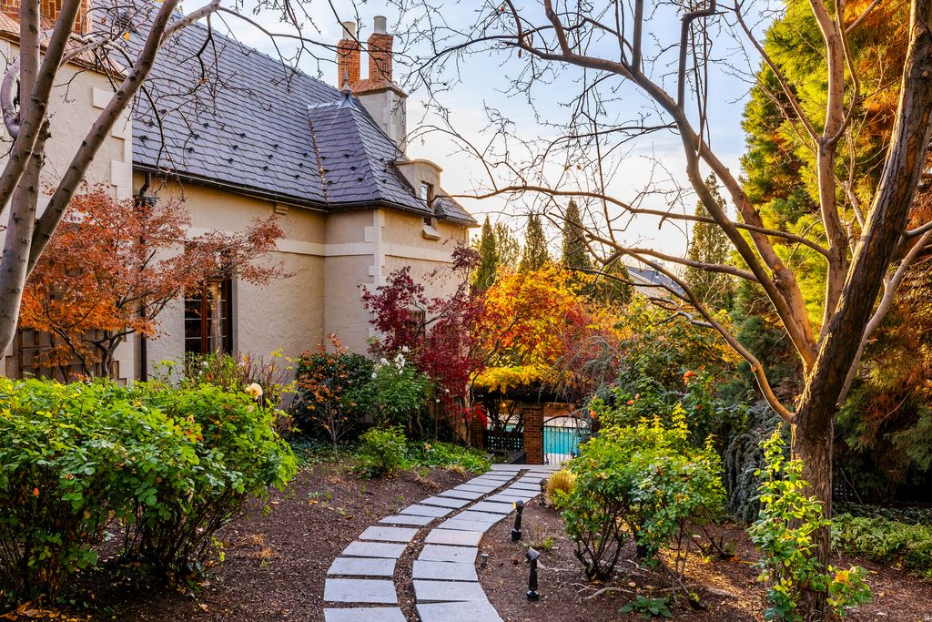 Nearly a century ago, this extraordinary French Chteau was sited in one of Salt Lake City's most serene and beautiful settings. Located in the Gilmer Park Historic District (National Register of Historic Places), the estate enjoys a rare park-like setting along Red Butte Creek, just three miles from downtown. Tucked into a wooded ravine between Harvard and Yale Avenues, it offers exceptional privacy and natural beauty. Built in 1926 as a true trophy home, the residence was designed as an architectural masterpiece seamlessly integrated into its surroundings. The private grounds feature mature trees, manicured lawns, ponds, stone bridges, and abundant wildlife-evoking the timeless charm of Monet's gardens. A meticulous restoration in 2006 returned the home to its original grandeur while thoughtfully updating it for modern living. European details include hand-painted ceilings, leaded and stained glass, custom wrought iron, and exquisite woodwork throughout. Highlights include a two-story library with quarter-sawn oak built-ins, an updated primary suite with private balcony, spa-style baths, and custom closets. The walk-out lower level opens to the grounds and swimming pool, perfectly positioned near an entertainer's kitchen. Stone stairways lead through lush gardens down to the creek below. The Chteau at 1220 Yale Avenue is one of Salt Lake City's most iconic legacy estates-offering historic significance, architectural excellence, and unparalleled natural beauty. A private showing is invited.