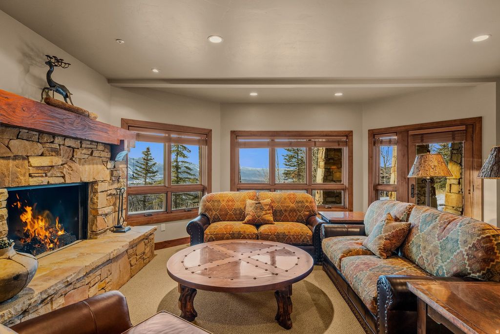 Inspired by classic Deer Valley mountain style, this exceptional legacy residence showcases panoramic views, vaulted ceilings, and floor-to-ceiling glass filling the great room with natural light while framing the surrounding landscape. Designed by renowned architect Michael Upwall, the home spans over 7,300 square feet, offering five generously sized bedrooms, six bathrooms, and a thoughtful balance of warmth, scale, and livability. Wood-burning fireplaces, a large chef's kitchen, formal dining area, and multiple entertaining spaces-including a private screening room and billiard area create an ideal setting for hosting family and friends. Savor the mountain scenery and unforgettable sunsets from expansive windows and outdoor living areas, enjoying unobstructed views stretching for miles. Radiant floor heating, multiple decks, a three-car garage, mudroom, and thoughtfully planned storage areas and closets ensure effortless comfort and convenience for year-round living. Located in the prestigious Hidden Oaks neighborhood just minutes from Deer Valley Resort and Park City's world-class skiing, this rare residence captures the true essence of the Park City mountain lifestyle-an enduring retreat designed to host many and last for generations.