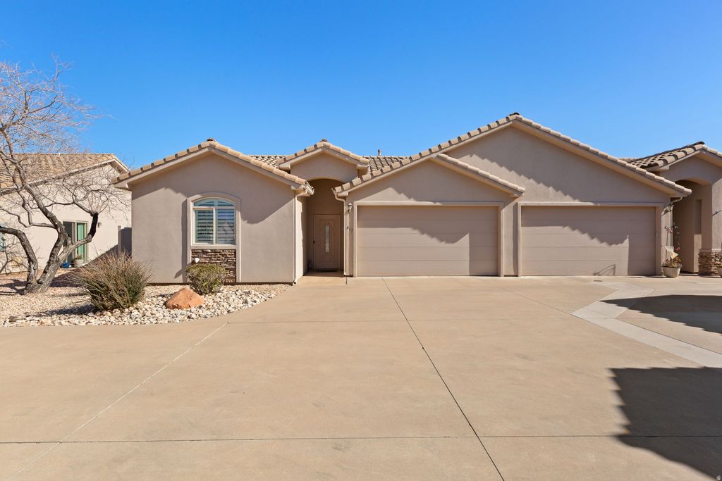 Charming, SINGLE-LEVEL, impeccably maintained 3bed, 2bath home with 2car garage and a new AC unit in 2025. The openconcept floor plan and desirable east-west exposure create a bright, comfortable living space. Lowmaintenance living close to medical, shopping, dining, Sky Mountain Golf Course, Sand Hollow Reservoir, Zion National Park, and all the outdoor recreation and lifestyle amenities Southern Utah is known for. FRIG, WASHER/DRY & WATER SOFTENER INCL. **QUALIFIES FOR RDA FINANCING**