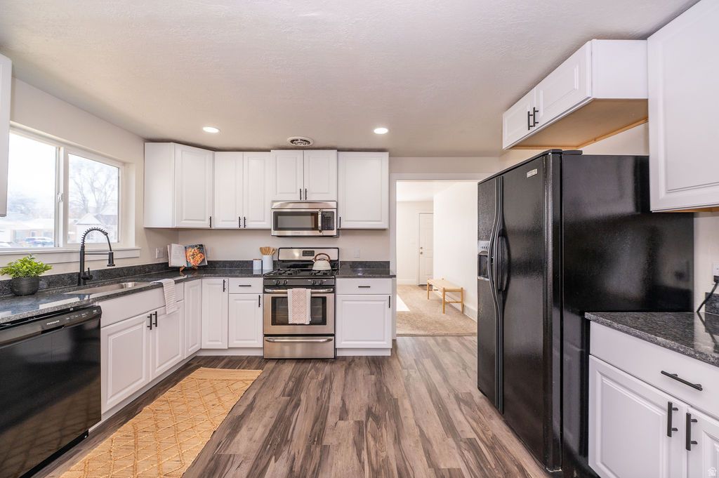 GRAND OPEN HOUSE 02/07 12-3PM. Totally remodeled home situated on a corner lot featuring Granite counter tops, brand new cabinets, updated lighting, fresh paint on the exterior & interior, dual vanity sinks in primary bathroom, new faucets & plumbing fixtures throughout. Step outside to a patio & fully fenced yard. Minutes to downtown ogden, 7 minutes to freeway access, come take a look!