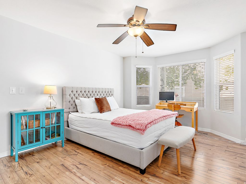 This beautiful home has lived a wonderful, lightly used, well-maintained 25-year life, and now it waits for you! It's six beds, three bathrooms, and two family rooms make it very functional. Some upgrades to mention include: new kitchen, updated bathrooms, paint throughout, flooring, A/C condenser, water heater, electric fireplace, new roof, fully landscaped yard, and a maintenance-free aluminum pergola. The backyard is mostly private, thanks to the trees planted 15 years ago, but the view of Timpanogos Peak can be breathtaking. The backyard is fully fenced and secure for children/pets. Call your professional Realtor TODAY. Don't miss it!