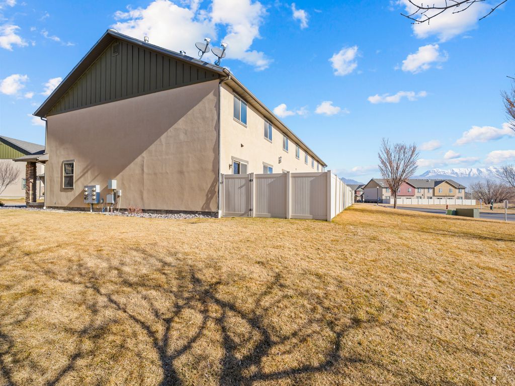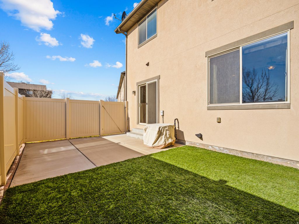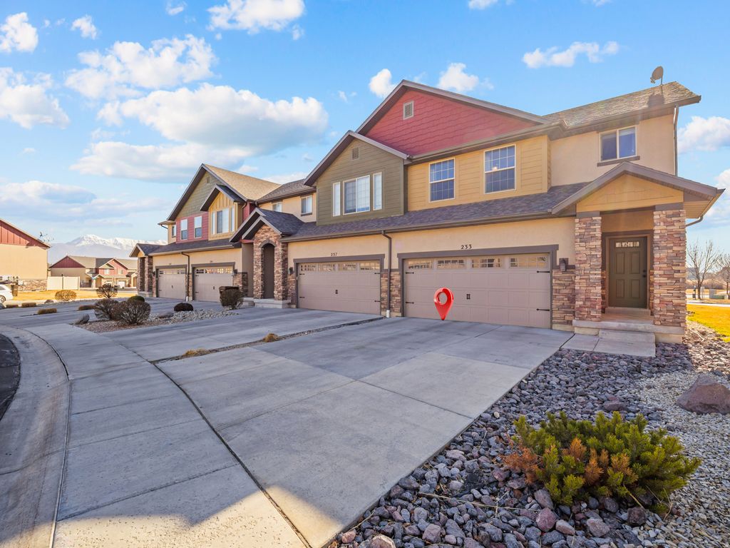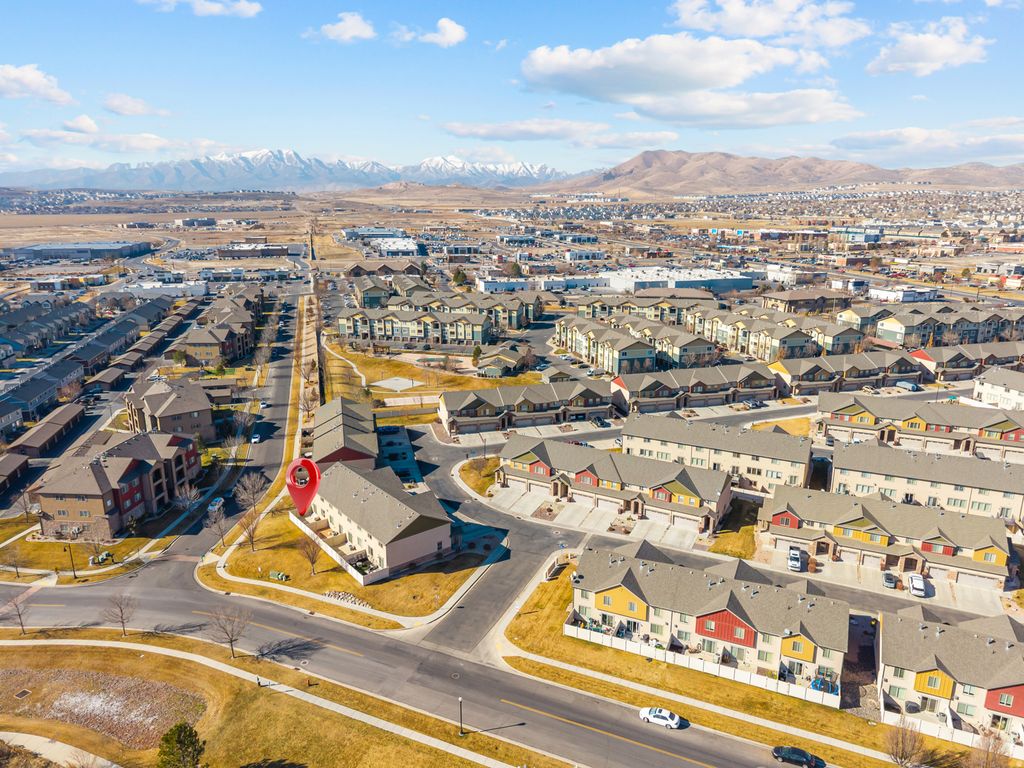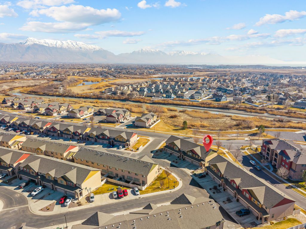 Welcome to this charming, and well cared for, 3 bedroom, 2.5 bath, townhome located in the desirable Cove community of Saratoga Springs. Offering 1,860 sq ft of living space across two levels, this home features a functional and inviting layout with vaulted ceilings, abundant natural light, and comfortable gathering spaces. The main level boasts beautiful flooring, includes a bright family room, kitchen with included appliances and dining area. Upstairs you'll find all three bedrooms, including a spacious primary suite with walk-in closet and private bath, along with the laundry and maintenance room. Enjoy outdoor living with pet friendly turf, patio and open porch - perfect for relaxing or entertaining. The home includes central air, gas heating, double-pane windows, and durable finishes throughout. Parking is easy with a built-in 2 car garage and additional guest parking nearby. The community is professionally managed by FCS Community Management and offers amenities including a pool, clubhouse, fitness room, playgrounds, trails, barbecue areas, and pet-friendly policies, along with snow removal, water, sewer, and exterior maintenance-providing a low-maintenance lifestyle. Located in the Alpine School District, near schools, shopping, commuter routes and the Jordan River Trail. Schedule your showing today! Buyer is advised to obtain an independent measurement.