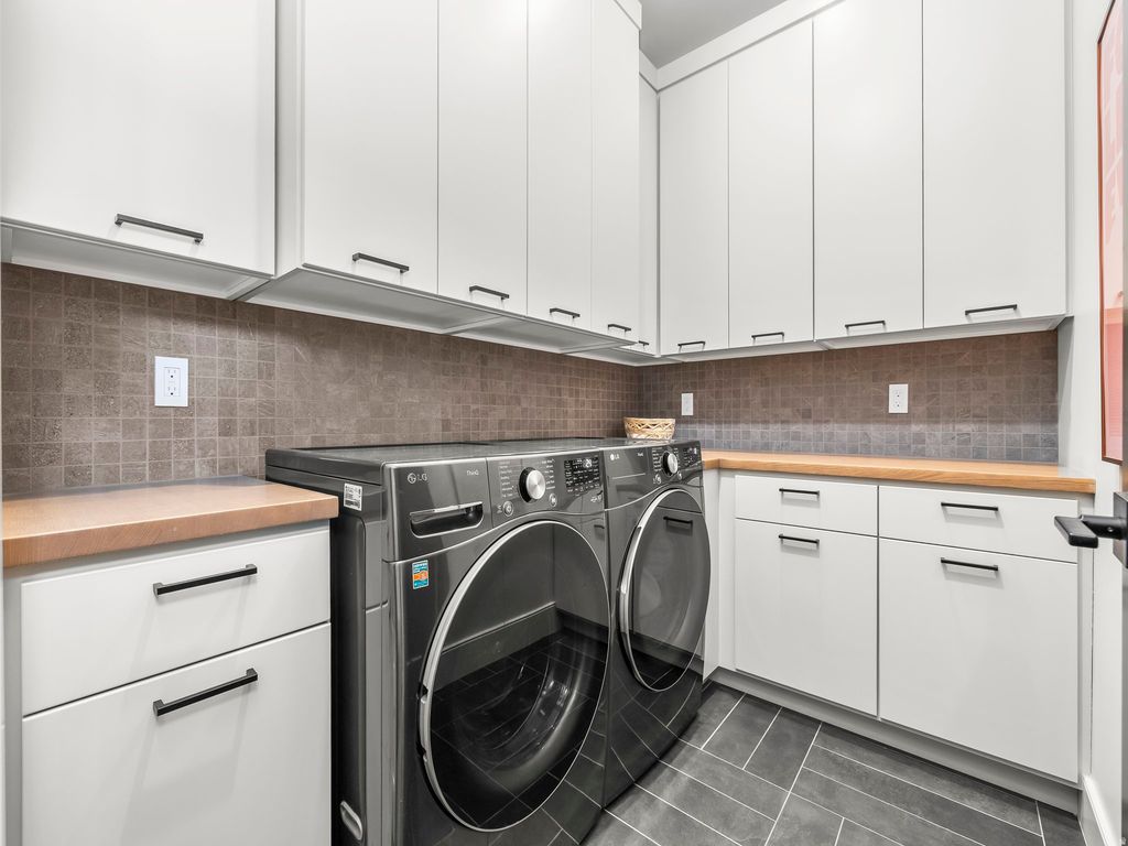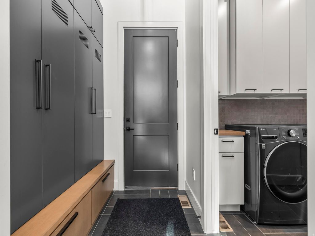 Perched in Summit Creek in Woodland Hills, this mountain-modern custom home blends refined architecture with a stunning alpine backdrop and sweeping mountain-and-valley views. Set on a .34-acre lot with a 3-car garage, the 6-bed, 6-bath, 5,153 sq ft layout is designed to live and entertain beautifully, with open, welcoming spaces on both levels. Floor-to-ceiling windows frame the panorama, while hidden retractable screens invite fresh mountain air. Custom exterior Polar Shades provide premier solar protection, glare reduction, and energy efficiency-without sacrificing the view. The outdoor living space flows seamlessly to a gas fire pit, perfect for sunset watching and summer fireworks over the valley. The lower level offers a flexible suite currently used as a home gym, but it can easily convert to a spacious bunk room with space for four bunks-ideal for hosting a crowd. Summit Creek is known for its high-end custom homes and resort-style amenities, including an elegant clubhouse ideal for events (even mountain weddings), a well-equipped fitness room, multiple pools, and hot tubs open for both Thanksgiving and Christmas. Miles of nearby trails offer endless hiking, biking, and ATV adventures-where luxury mountain living becomes an everyday experience.