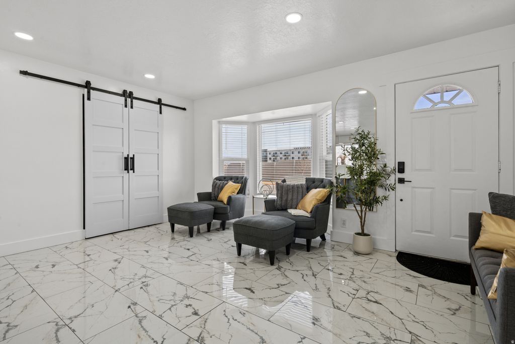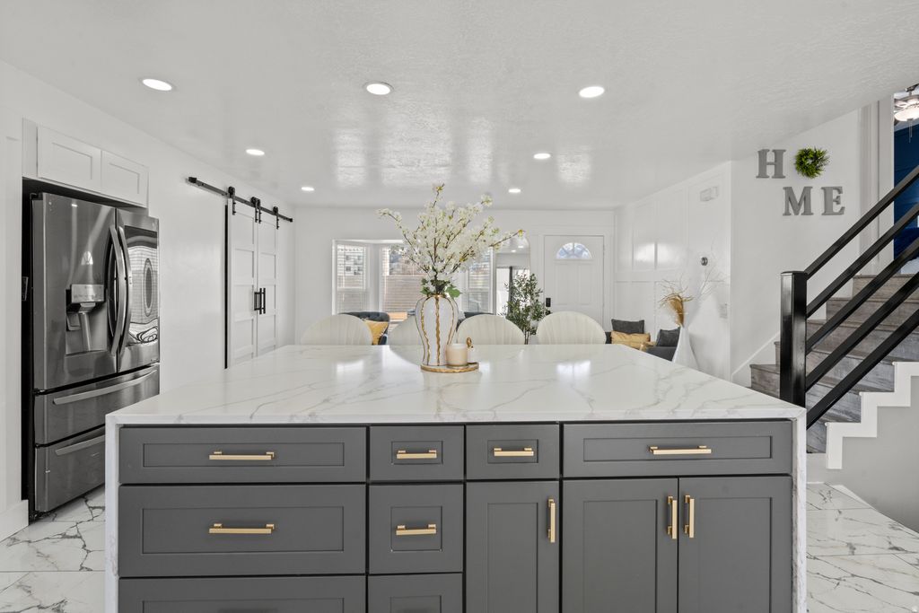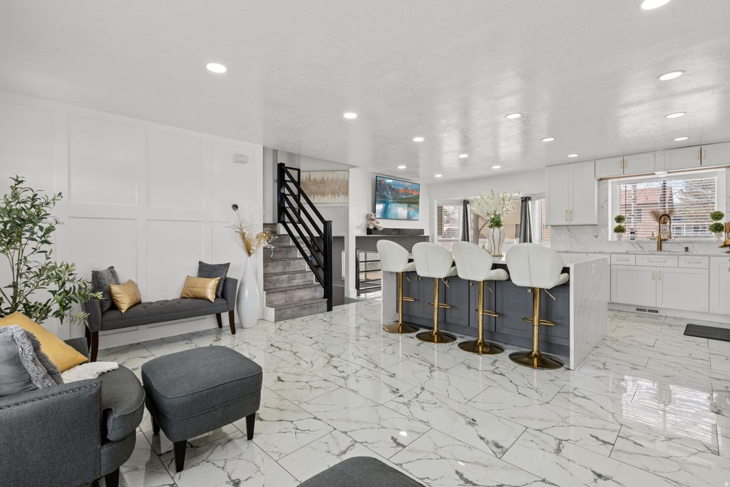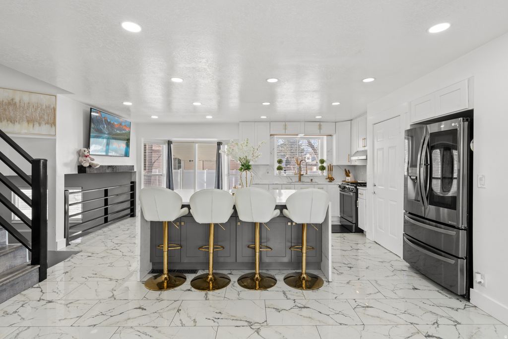 Beautifully fully remodeled home in quiet West Jordan neighborhood, showcasing high-end luxury finishes throughout. This stunning residence features gorgeous upgraded flooring, fresh modern design, and an open-concept layout filled with natural light. The designer kitchen is a showstopper with sleek white cabinetry, gold hardware, premium countertops, stainless steel appliances, and a spacious island perfect for entertaining. Stylish living spaces include elegant accent walls, recessed lighting, and thoughtfully curated finishes. The bathrooms have been tastefully updated with modern vanities, custom tile work, and upscale fixtures. Bedrooms offer comfort and functionality, including a beautifully finished primary suite. Enjoy outdoor living in the fully fenced backyard, ideal for gatherings, pets, or relaxation. Attached 2 garage with beautiful epoxy flooring. Plenty of public parking available. Conveniently located near schools, parks, shopping, and commuter routes. This home offers the perfect blend of modern luxury and everyday comfort!! a must-see!