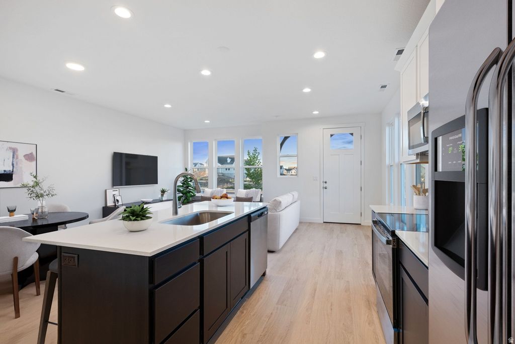 Must See Townhouse! Open great room is perfect for Entertaining or Daily Living. Secluded Primary Suite is separated from the additional guest bedrooms. 2 Laundry Hookups. UPGRADES Included in pricing! Come take a look today! Estimated completion March/April. Daybreak amenities include, Pools, Gym, Parks, Downtown Daybreak, Bees Stadium, Trax, Restaurants & More! Buyer and buyers agent to verify all information. RE taxes not yet assessed.