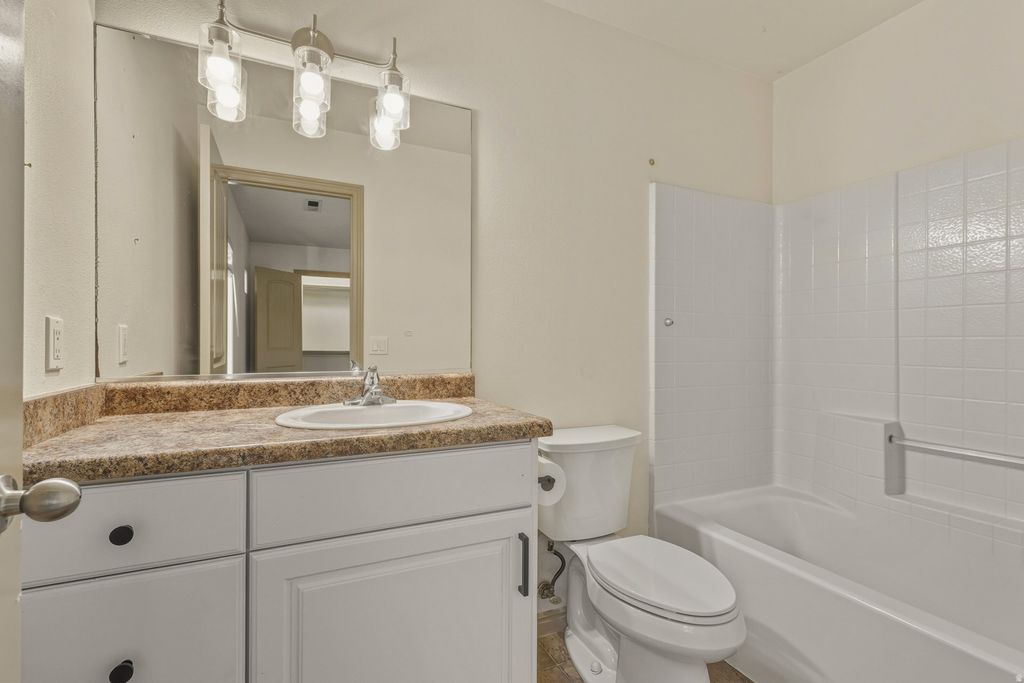 Updated Townhome with Private Backyard. This two-level townhome offers a perfect layout with clearly defined living spaces and practical features throughout. The main level includes an interior entry, living room, dining area, kitchen, laundry room, pantry and a half bathroom, creating an efficient flow for daily use. The kitchen includes a new sink and appliances, including a dishwasher, stove, and refrigerator. Tile flooring is featured on the main level, with carpeted living areas and upper-level bedrooms. Upstairs features the oversized primary en-suite bedroom with two additional bedrooms and a second full bathroom. Storage is integrated throughout the home, and ceiling fans are present in several rooms. The exterior includes a private backyard space and assigned covered parking plus an extra space per unit. The property is located near local shopping, dining, the community center and easy access to the freeway providing convenience for everyday living.