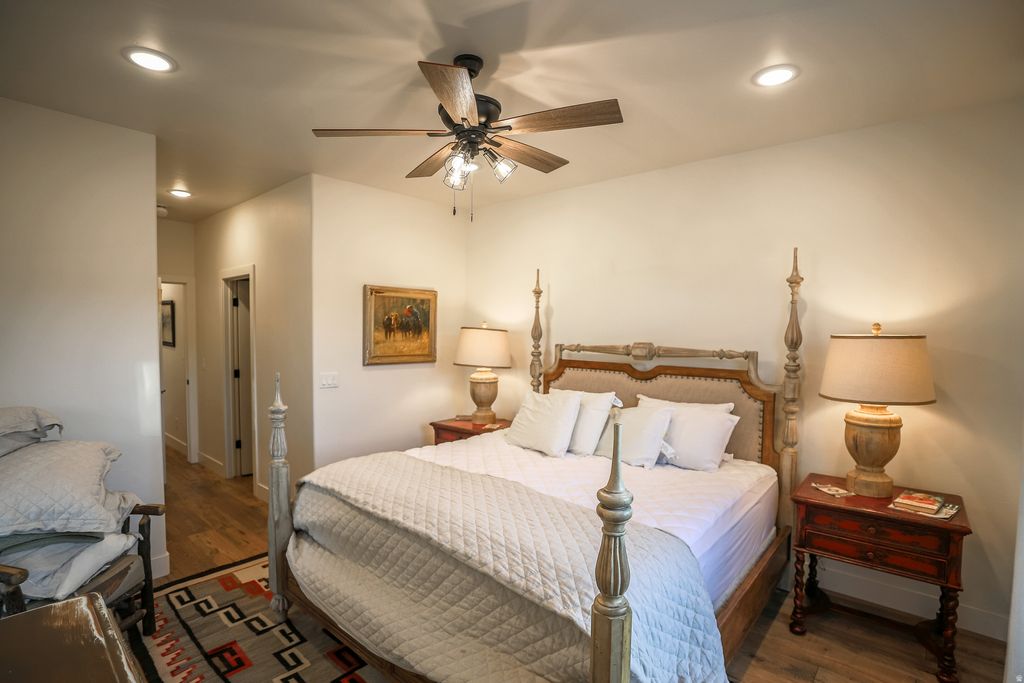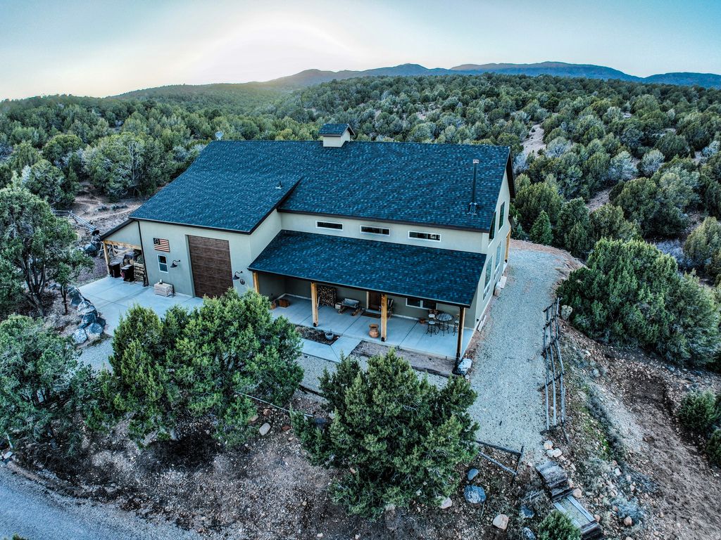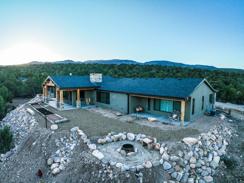 Private hilltop retreat away from the crowds. Situated on 20 secluded acres, this stunning property offers panoramic views into Kolob Canyon & surrounding landscapes. This beautifully designed home features 4 bedrooms/ 5 bathrooms, showcasing custom, high-end appliances & exceptional finish work throughout. Designed w/ both luxury & functionality in mind, the property includes a detached barndominium complete w/3 indoor horse stalls & an outdoor round pen, making it ideal for equestrian enthusiasts. Enough garage space w/the ability to accommodate up to 7 vehicles, including an oversized 16-ft pull through garage door. Residents can enjoy access to the community's HOA equestrian center w/many additional amenities. Experience privacy, luxury, and scenery all in one extraordinary property.