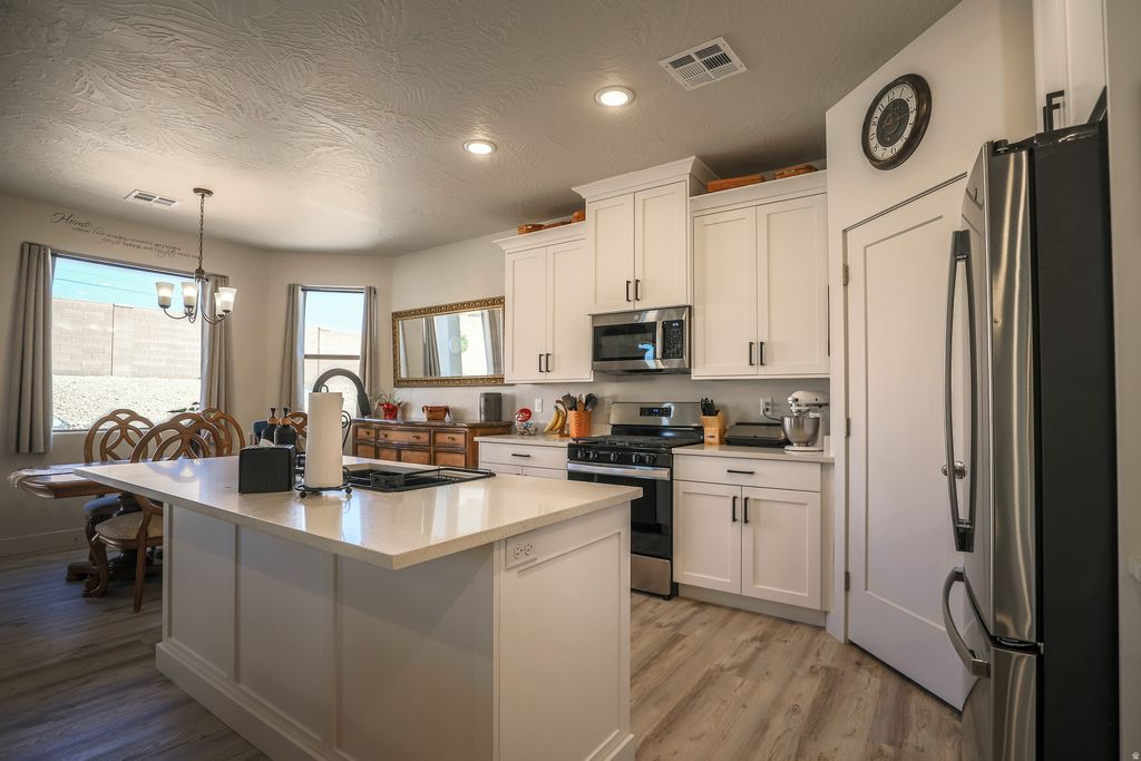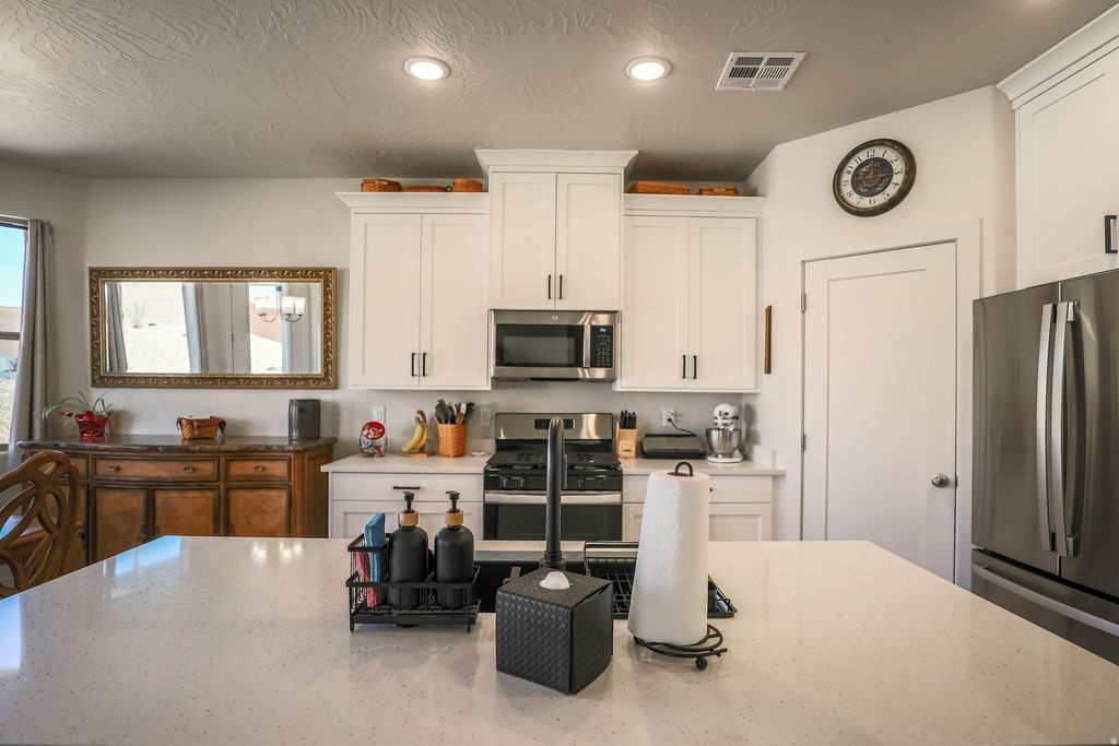 Barely lived in and beautifully maintained, this Painted Sands home offers 4 bedrooms, 2 baths, and a spacious 4-car garage-perfect for vehicles, storage, or toys. Enjoy quartz countertops throughout, soft-close cabinetry, and upgraded flooring. Nestled on a large corner lot with a private backyard, this home features a great floor plan and so much more to love.