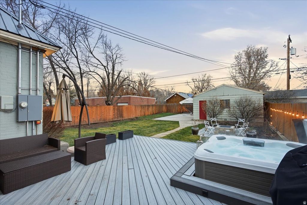 Welcome to this beautifully updated Victorian in the heart of one of Salt Lake's most walkable and sought-after neighborhoods. Thoughtfully renovated over time, the home strikes a rare balance between historic charm and cohesive modern design. The main level flows effortlessly, with hardwood floors, an updated kitchen, and warm living spaces filled with natural light. Upstairs, bedrooms with vaulted ceilings and contemporary aesthetics create a sanctuary of privacy and calm. The backyard is a true highlight. Private, secluded, and ideal for both relaxing and hosting. Mature trees surround a spacious deck with a nearby fire pit and hot tub, creating an inviting outdoor space that feels like a natural extension of the home. Additional features include a detached two-car garage, extra off-street parking, and a fully fenced lot. Located just minutes from Liberty Park, 9th & 9th, local shops, dining, downtown Salt Lake City. This is a rare opportunity to own a home rich in character, the owners have loved living here and are only selling due to relocation.