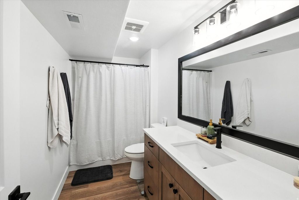 This 2023-built home in Hyrum sits on a .32-acre corner lot. With 6 bedrooms and 3 bathrooms, the home features thoughtful upgrades throughout like quartz countertops, a luxury walk-in tile shower, walk in primary closet and a large cold storage. A second kitchen creates a fully functional 3-bed, 1-bath accessory dwelling unit (ADU)-ideal for multi-generational living, rental income, or a private guest suite. The oversized 4-car garage is a standout, complete with built-in storage and a workbench, making it perfect for hobbies, projects, or additional storage. A Large RV Lot offers additional parking for cars or Toys with access to the fully fenced backyard. This property delivers exceptional versatility, comfort, and long-term value in a quiet, desirable neighborhood.