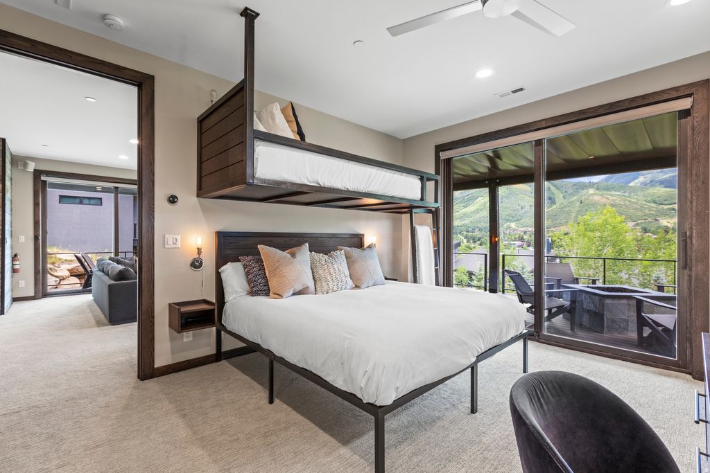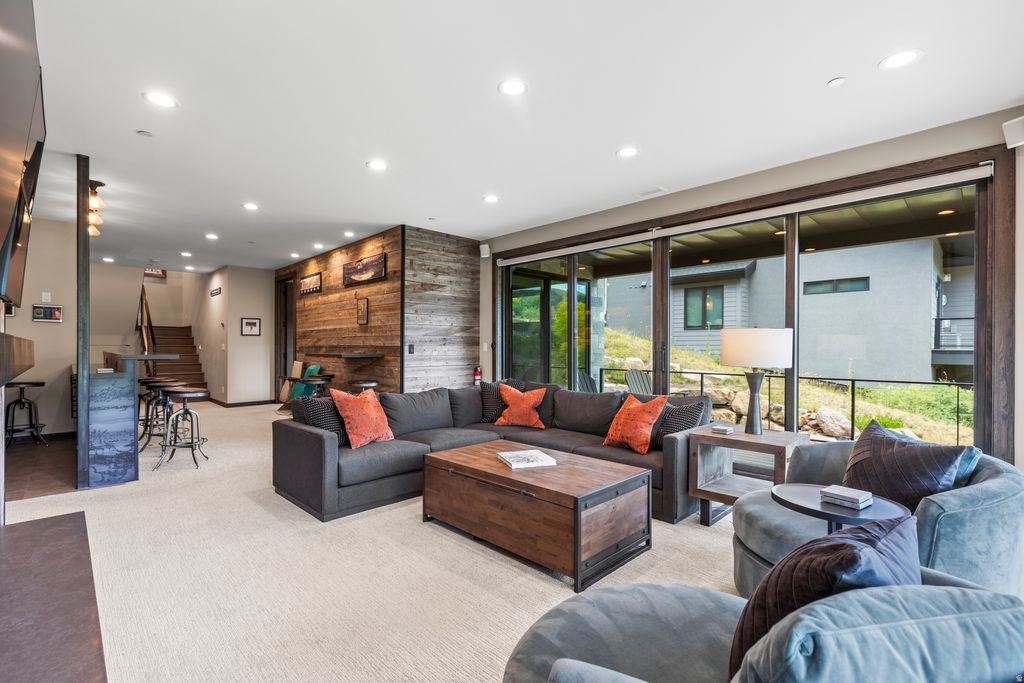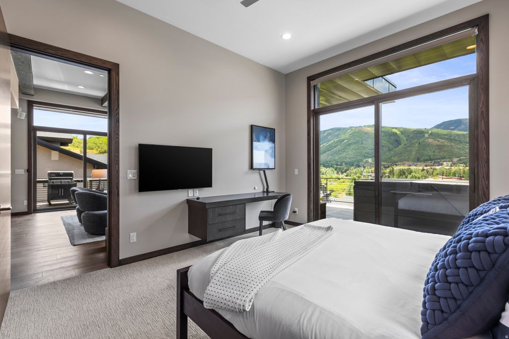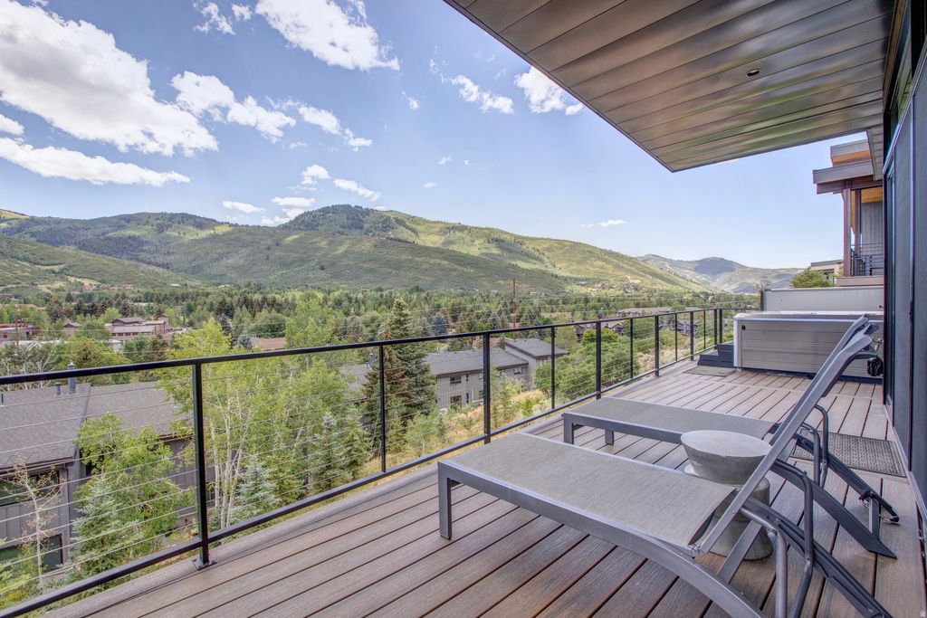 A perched sanctuary with accessibility, this location offers a rare blend of sweeping views, privacy, and proximity to it all. Enjoy this stunning, 2020 four-bed home featuring immediate mountain views from Deer Valley to Canyons Village, elevated fixtures and finishes, and modern technology. Main-level living, craftsman level fireplaces, wood floors, leathered granite & quartz countertops, custom floating furniture. Each bedroom boasts its own roomy en-suite bathroom with dual sink vanities, walk-in showers, heated floors and under-cabinet lighting. Ample built-in closets and storage throughout ... Beautiful kitchen and butler pantry. Extra-large mudroom. The primary suite and home office are up one level. A standout feature in the lower level living area is the sports den and bar. TVs are located in every bedroom, in the main living areas, and even outside by the hot tub! Music can also be streamed from your devices to the wireless speakers in the living and family rooms. Main level and lower-level wrap-around decks with fire pit, bbq and hot tub. Spacious mudroom , 2 car garage, heated driveway. Deer Valley, Park City Mountain, and Canyons Village just minutes away, along with Historic Main Street's world-class dining and entertainment. A five-minute scenic path takes you to grocery store, a liquor store, and multiple dining options. A variety of additional shopping and dining within walking distance, and the free City bus proves easy access to the rest of Park City. Whether you're relaxing by the fire, soaking in the private hot tub, or sharing a toast at the in-home bar and sports den, every moment here feels elevated.