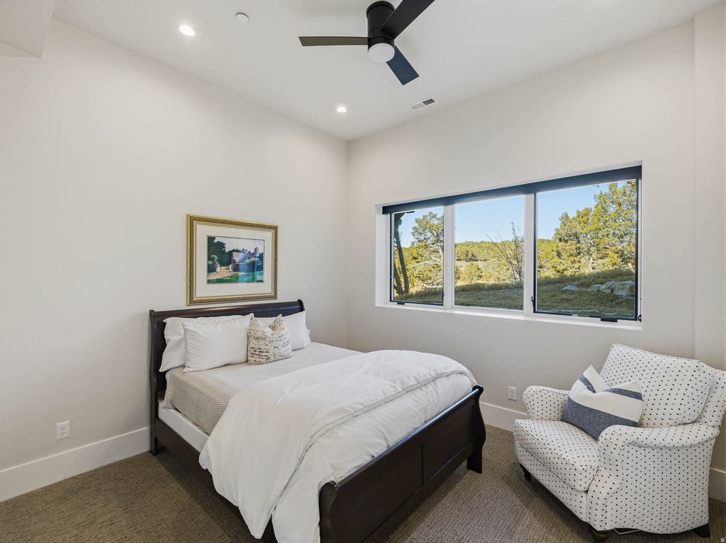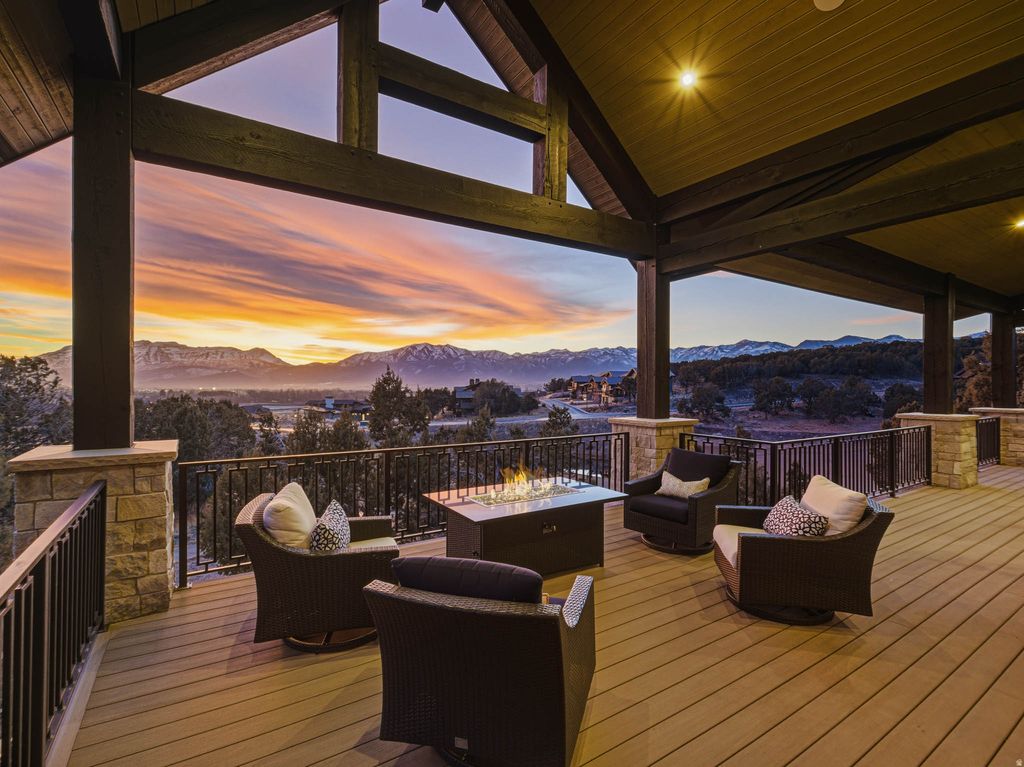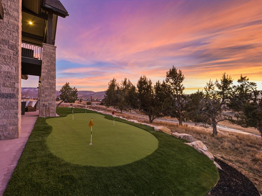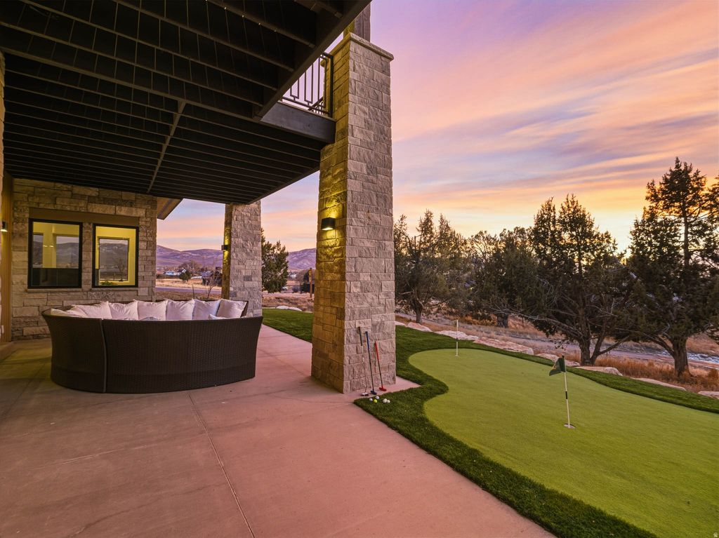 Welcome to Red Ledges, an affluent, award-winning mountain community offering a lifestyle truly unlike any other. Residents enjoy world-class amenities including the prestigious Jack Nicklaus Signature Golf Course, elegant clubhouse, state-of-the-art wellness center, equestrian facilities, three resort-style pools, tennis and pickleball courts, miles of hiking and biking trails, and a dedicated children's center. Bonus: This home includes coveted golf club and membership rights. Set on the 6th green, this exceptional residence is surrounded by professionally designed landscaping with an abundance of blooming flowers and sweeping natural beauty. The property captures breathtaking views of Mount Timpanogos, the surrounding valley, and unforgettable sunrises and sunsets. With no neighboring homes directly in front, behind, or to either side, the setting offers a rare sense of privacy and a true mountain retreat experience. Inside, expansive windows frame the views and flood the home with natural light. The gourmet kitchen is appointed with exquisite marble countertops, top-of-the-line Wolf and Sub-Zero appliances, and a well-designed butler's pantry, ideal for both daily living and entertaining. The primary suite is a private sanctuary, featuring serene views and a recently remodeled spa-like bathroom. Additional living spaces include four spacious ensuite bedrooms, two family rooms, an office,a dedicated craft room, and a sunroom with multiple possibilities. An indoor sports court allows for year-round basketball or pickleball enjoyment, adding a unique recreational element rarely found in residential homes. Luxury and functionality continue with a whole-house backup generator, electric window shades, Lutron lighting system, VSSL whole-house audio, a personal putting green, and an expansive garage accommodating up to five vehicles or an RV. All information herein is deemed reliable but is not guaranteed. Buyer is responsible to verify all listing information, including square feet/acreage, to buyer's own satisfaction.