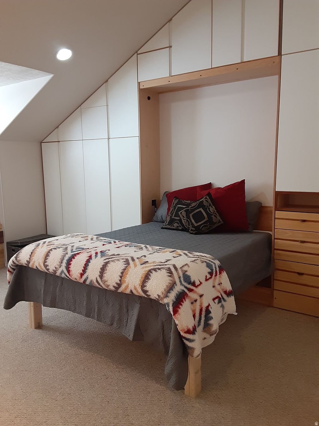 Check out this VERY UNIQUE Moose Hollow condo! This unit boasts beautiful woodwork, hand-crafted by a Norwegian boat builder. It includes plenty of practical Scandinavian-style storage. There is no other unit like it in Eden! Both bedrooms have balconies and great views of the Valley. Check out the versatile loft-style space upstairs including vaulted ceilings and an ensuite bathroom. The Murphy Bed is nestled behind the sweet wooden mountain mural and literally folds down right over the hand-made sofa - a perfect fit! No need to move the sofa to bring down the bed! Lots of beautiful hand-made wooden drawers for your wool socks and ski mittens. You will also find a beautifully constructed platform upstairs with amazingly spacious solid wood rolling drawers underneath. The platform was designed to house additional guests or could be used as a cozy reading nook. Either way you will have lovely views of Snow Basin. We have even added hanging storage for bikes in the upper ceiling hallway! Updated kitchen has granite countertops and stainless appliances. Powder Mountain shuttle stops right out front. The unit also affords quick driving access to Snowbasin and Nordic Valley ski resorts. Residents have access to a variety of premium HOA amenities, including a clubhouse, seasonal pool, year-round hot tub, fitness center, volleyball court, and a fire pit-ideal for unwinding after a day on the slopes or trails. This turn-key condo seamlessly combines comfort, convenience, and access to world-class recreation. Whether you're looking for a laid-back personal retreat or an investment property, this mountain getaway is a must-see! All property information, boundaries and documents to be verified by the buyer.