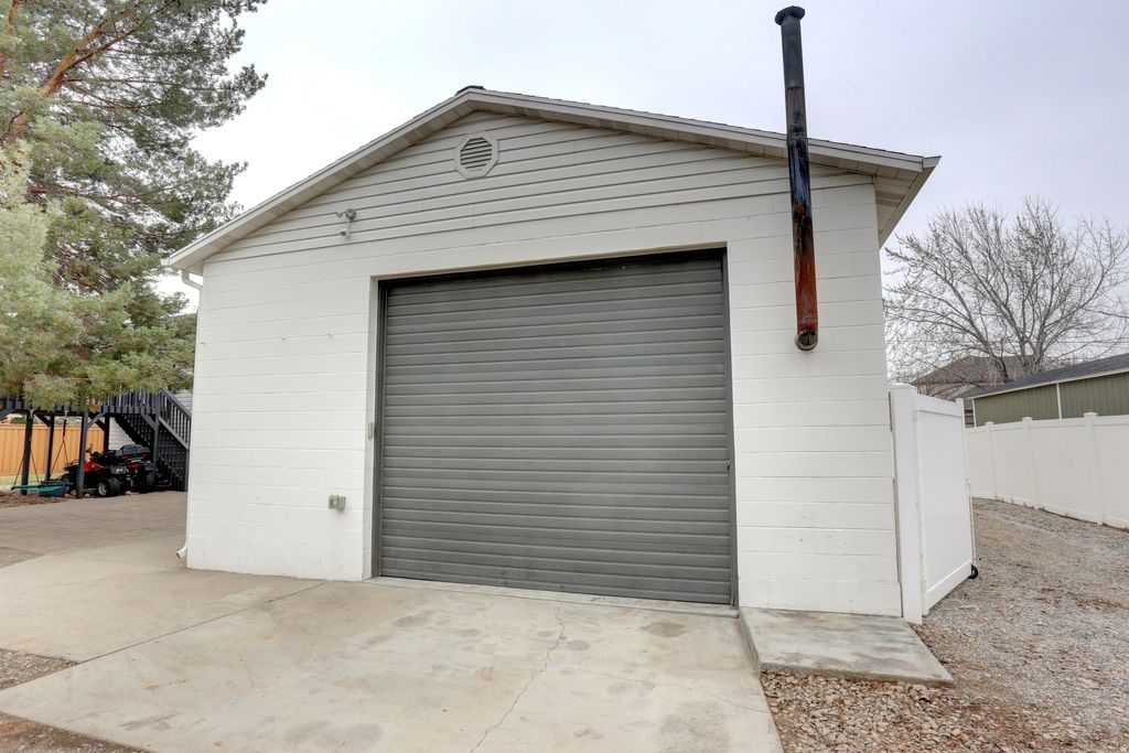 Fully remodeled in 2022-this home has it all! New roof, AC, furnace, windows, water heater, fresh interior and exterior paint, and a beautifully updated kitchen. The flat half-acre lot is completely landscaped with mature trees, full-length RV parking, a spacious shaded deck and patio, and full fencing with a double gate. A 960 sq ft shop/garage with extra-tall doors on both ends makes access easy for toys, trailers, or projects. Properties like this don't come along often-call today to schedule your private showing before it's gone!