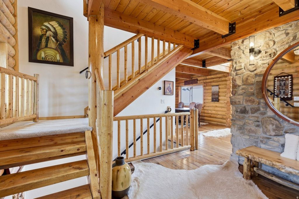 Experience the pinnacle of mountain living in this breathtakingly renovated log cabin, perched in the serene community of Cedar Highlands. This home has been meticulously updated to blend rustic charm with modern luxury, featuring a complete log restoration and professional exterior staining finished in late 2023. Inside, the home boasts unique light fixtures, and stunning walnut floors that add a layer of warmth and character to every room. The heart of the home includes a remodeled kitchen boasting brand-new appliances and elegant stone countertops. All bathrooms have been completely transformed with high-end finishes, and new custom interior handrails lead you through the thoughtful layout. This property is offered as a turnkey retreat, including all furniture, bedding, linens, and kitchen essentials, allowing you to move in and immediately begin enjoying the quiet elevation. Beyond the interior, the home is designed to harmonize with its stunning natural surroundings. You'll find jaw-dropping views from every window. The outdoor living spaces are equally impressive, featuring a massive restored wraparound deck on the main level and private balconies with new French doors and Andersen storm doors for all upstairsbedrooms. These elevated spaces provide a front-row seat to the local wildlife, with deer regularly visiting the property. The exterior is rounded out with practical upgrades, including new window screens, a newly graded and smoothed driveway with a sturdy stone sidewall, and a freshly painted garage. Whether you are warming up by either of the 2 stone fireplaces or watching the sunrise over the peaks, this home offers a unique sense of stillness and serenity. Located at an elevation of over 7,000 feet, Cedar Highlands offers a lifestyle defined by adventure and beauty.You are perfectly positioned for world-class recreation, with a short drive to the powder atBrian Head Ski Resortand easy access to the majestic landscapes ofZion, Bryce Canyon, and Cedar Breaks National Parks.The community itself features fantastic hiking and biking trails, while the vibrant culture of Cedar City is just down the mountain.Home toSouthern Utah Universityand the renownedUtah Shakespeare Festival, the city offers a diverse array of restaurants, golf courses, and reservoirs. Whether you are exploring the red rocks or enjoying a quiet evening in the mountain air, this property serves as the ultimate basecamp for the best of Southern Utah. All information herein is deemed reliable but is not guaranteed. Buyer is responsible to verify all listing information, including square feet/acreage, to the buyer's own satisfaction.