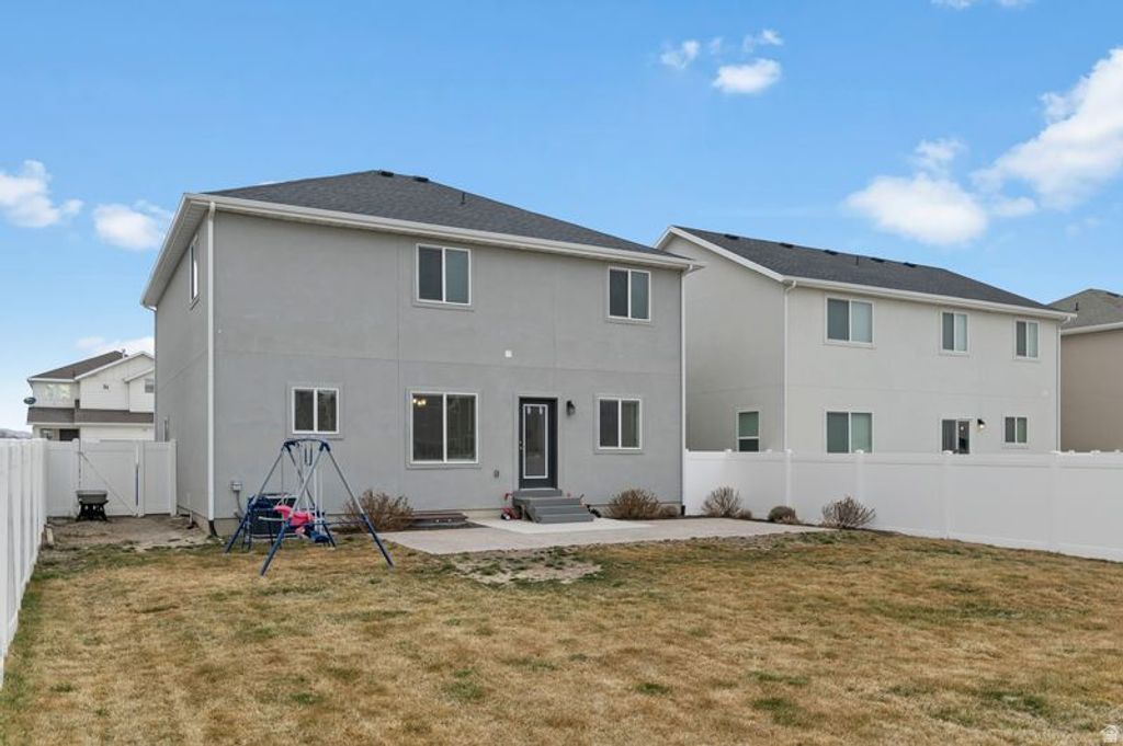 Welcome to this stunning 4-bedroom home in the heart of Eagle Mountain! Only 3 years old and impeccably maintained, this home offers modern finishes, thoughtful upgrades, and a spacious layout designed for today's living. The open-concept floor plan is filled with natural light and features upgraded laminate flooring throughout the entire main floor, creating a seamless and stylish look. The kitchen is a showstopper with quartz countertops, beautifully painted cabinets, and 42" upper cabinetry offering both elegance and ample storage. Situated on a large lot, there's plenty of room to relax, entertain, and enjoy the outdoors. Move-in ready and better than new - why wait to build when you can have this one today?