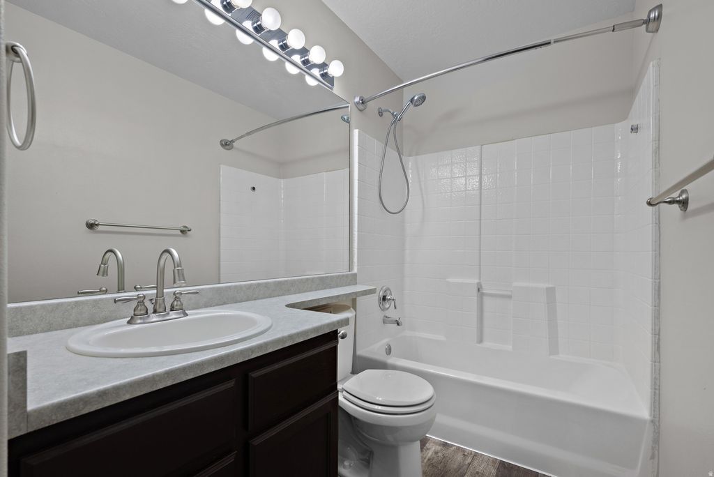 Welcome Home! Prepare to fall in love with this clean, adorable, move-in ready Stansbury Park two-story. Situated on a corner lot backing Village Boulevard Park & within walking distance to Stansbury High, this home features neutral paint, a walk-in pantry, stainless appliances, and nest smart home thermostat. Master bath has a large tub & walk-in closet. Fenced in backyard features a beautiful patio and garden boxes to grow your own vegetables! Square footage figures are provided as a courtesy estimate only and were obtained from county records. Buyer is advised to obtain an independent measurement.