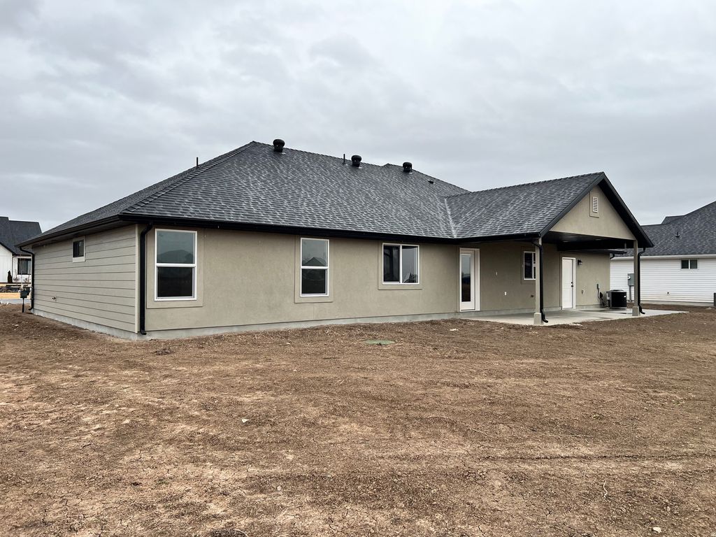 Luxury single-story custom home in a new subdivision featuring high-efficiency heating and A/C, 2x6 construction, and an insulated interior-finished 4-car garage. Open floor plan with granite countertops, stainless steel appliances, custom cabinets, 5" trim, and a spacious primary suite with a walk-in closet. Large laundry room, covered patio, water softener rough-in, and 30-year architectural shingles accompanied by three turebin vents providing exceptional attic ventilation and longer shingle life. Expansive 348-ft-deep lot ideal for livestock, orchard, or future guest house. Oversized septic system professionally designed to support an additional residence, offering exceptional future flexibility.