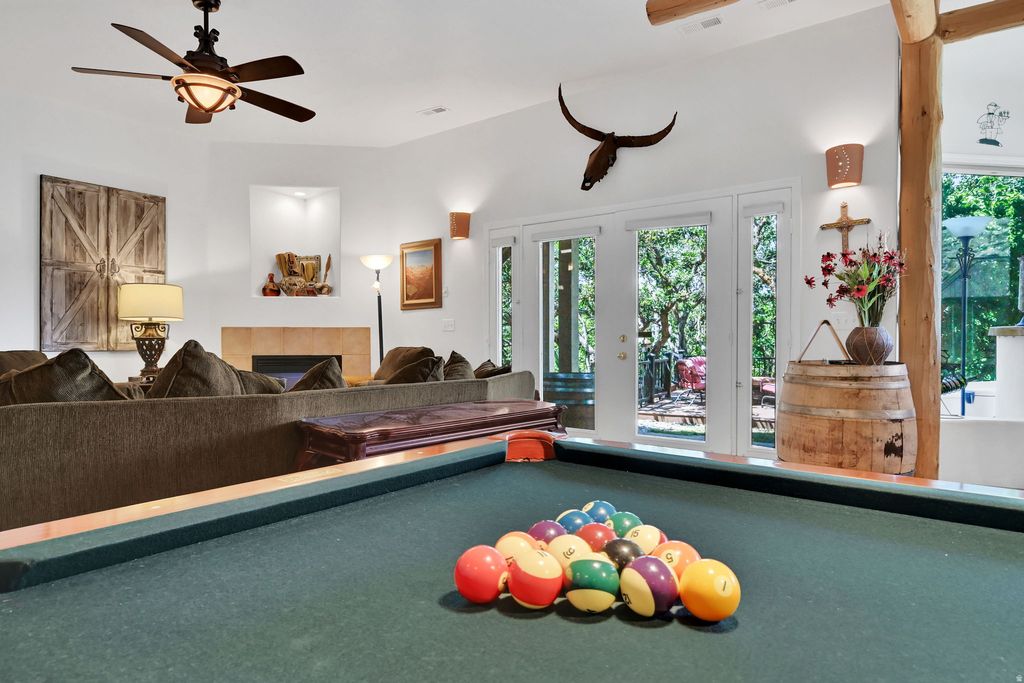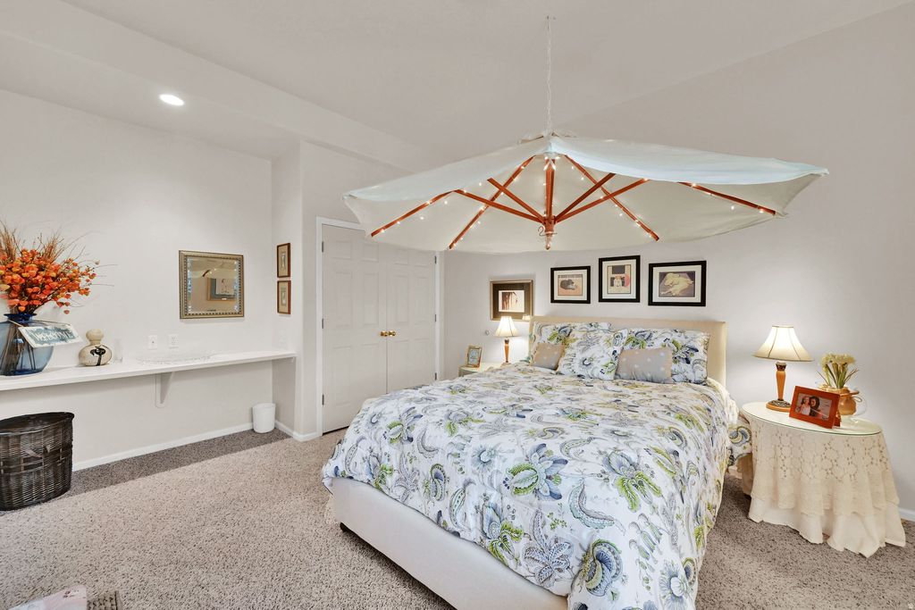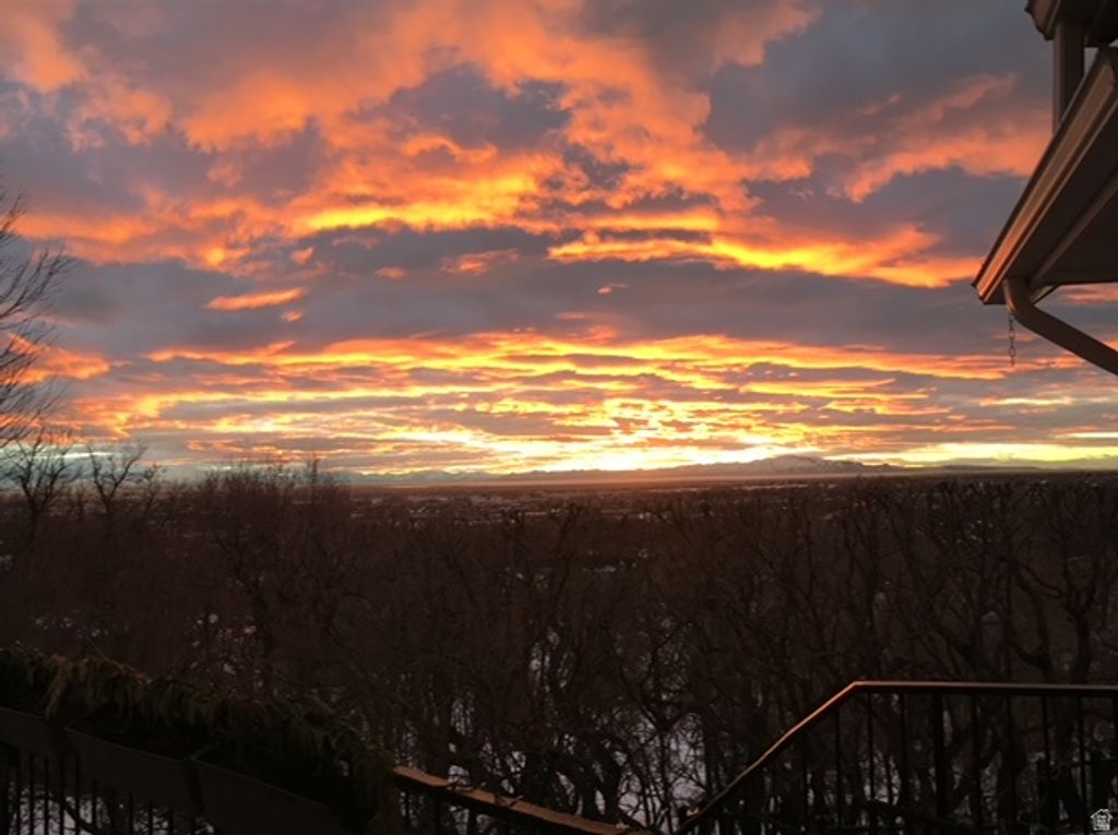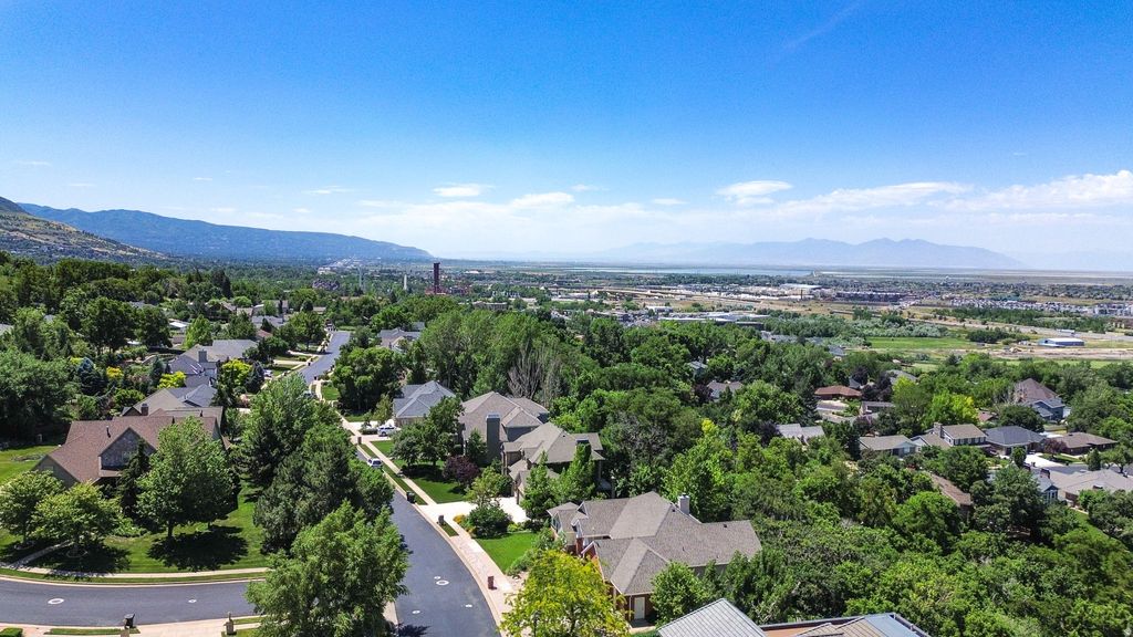 Gorgeous East Farmington bench home with unbeatable views and exceptional upgrades throughout! This stunning 4-bedroom, 3-bath residence welcomes you with soaring 18-foot ceilings, a dramatic see-through gas fireplace, and panoramic mountain, lake, and sunset views that truly bring the outdoors in. The formal dining room comfortably seats 12 and showcases incredible views of Antelope Island. The main-level primary suite is a peaceful retreat featuring a cozy sitting area, remote-controlled fireplace, and walk-in closet. The luxurious en-suite bath offers spa-like comfort with heated tile floors, a Euro steam shower with full glass surround, rain head and handheld fixtures, instant hot water with a recirculating pump, a freestanding soaking tub, and an additional walk-in closet. Designed for entertaining, the walkout basement boasts 12-foot ceilings, a built-in bar, daylight windows, and a spacious open layout perfect for gatherings. Step outside to your private backyard oasis complete with a covered patio, three custom Trex decks, a tranquil water feature, mature trees, and a fenced garden with producing peach trees. The fully landscaped yard features 100% perennials, automatic sprinklers, and drip irrigation for easy, year-round beauty. Additional highlights include a dedicated main-floor office with French doors, three gas fireplaces, remote-controlled insulated window coverings in the living and dining rooms, a remote sunshade on the upper deck, gas line for a future fire pit, abundant storage, a three-car garage, fully paid and transferable solar panels, and a brand-new 4-ton A/C unit. Ideally located in a quiet East Farmington neighborhood near trails, top-rated schools, and convenient access to shopping, dining, Highway 89, and I-15-plus just minutes from Farmington Station and the FrontRunner commuter rail for an easy commute. This is luxury living with views you'll never tire of.