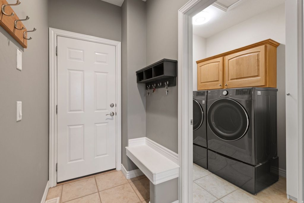 Located on the East Bench of Bountiful, this 5-bedroom, 3-bathroom home sits in a well-established neighborhood with quick access to the mountains, hiking trails, and outdoor recreation. The open floor plan is filled with natural light, enhanced by large windows and upgraded plantation shutters throughout. The primary bedroom is conveniently located on the main floor, offering comfortable main-level living. Enjoy multiple living spaces with family rooms both upstairs and downstairs, ideal for entertaining, relaxing, or flexible use. The basement features oversized storage areas and an additional flex room with a window-perfect for a craft room, hobby space, or home office-with even more storage available. Recent updates include a new water heater, kitchen range, water softener, and radon mitigation system, offering added peace of mind for the next owner. Outside, the large, flat, fully landscaped and fenced lot provides excellent usability for outdoor living and entertaining. The home is not part of an HOA, but neighborhood residents have the option to purchase access to the nearby community pool. Located in a sought-after area and truly move-in ready, this home is ready for its next owner.
