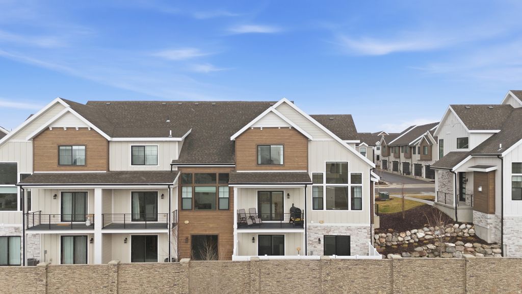 Welcome home to this stylish Brad Reynolds-built townhome in Sandy! Located just 1015 miles from world-class skiing at Snowbird, Alta, and Brighton, and adjacent to scenic Dimple Dell Regional Park, this beautifully upgraded townhome offers the perfect blend of comfort, style, and convenience. This unit is the desirable A model and features a walkout basement along with a patio off the main level, creating great indoor-outdoor living spaces. Enjoy a modern, open layout with premium finishes throughout, including custom automatic cordless window coverings and designer drapery that add both style and convenience. The finished basement with a full bath provides flexible space, ideal for a guest suite, home office, or playroom. Upstairs, the spacious primary suite features a walk-in closet and private bath, while the additional bedrooms offer comfortable space and ample storage. The fenced backyard area is perfect for pets or private outdoor relaxation. With a two-car garage ready to store all your mountain gear and a prime location near outdoor recreation, this move-in-ready townhome is one you won't want to miss. Square footage figures are provided as a courtesy estimate only and were obtained from county records. Buyer is advised to obtain an independent measurement. Seller is related to the listing agent.