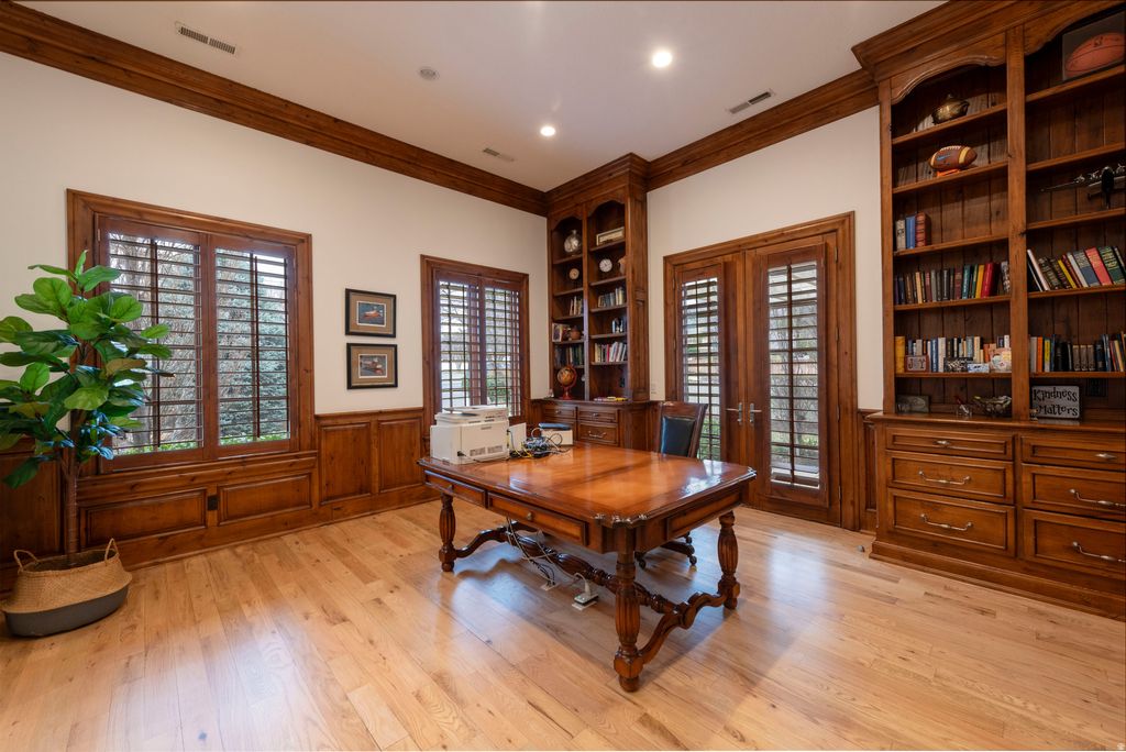 Charming stone and brick European style with soaring ceilings, wide-open spaces and truly fabulous millwork and finishes. Many tasteful updates by the original owner who has loved this home. Huge .65 acre lot with privacy, mountain views and a wonderful pool and spa! There is a detached oversized RV/boat garage plus an oversized attached double. Play court, circle drive and mature, park-like landscaping add appeal. The spaces include a grand entry, elegant formal living and dining rooms, a main floor office and spacious family rooms main and down. The main level primary has a freshly redone luxury European bath. The kitchen is all white, quartz slabs, and a great bay window overlooking your own private park. There are main and lower laundry facilities. Four large bedrooms are down. There is a ton of storage. Note the top floor secluded theatre! This house has it all, plus the ultimate location!