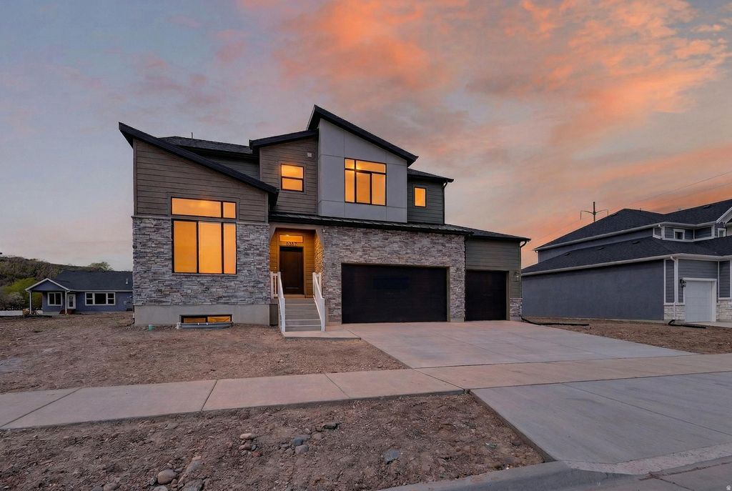 This gorgeous "Glacier" home design has it ALL!!! 3 spacious great rooms, large office, beautiful kitchen with upgraded quartz countertops, huge pantry, 6 spacious bedrooms, tiled fireplace, dual heating/cooling systems, covered patio, storage galore, 4 car garage & Plumbed for future kitchen in basement. Riverwood is South Weber's newest and most popular community. Incredible home warranty included. We are offering $12,000 + incentives - ask for details! Come see the stunning features this home and community have to offer!