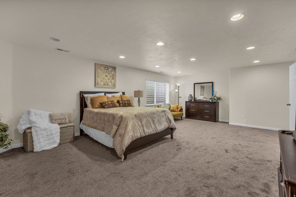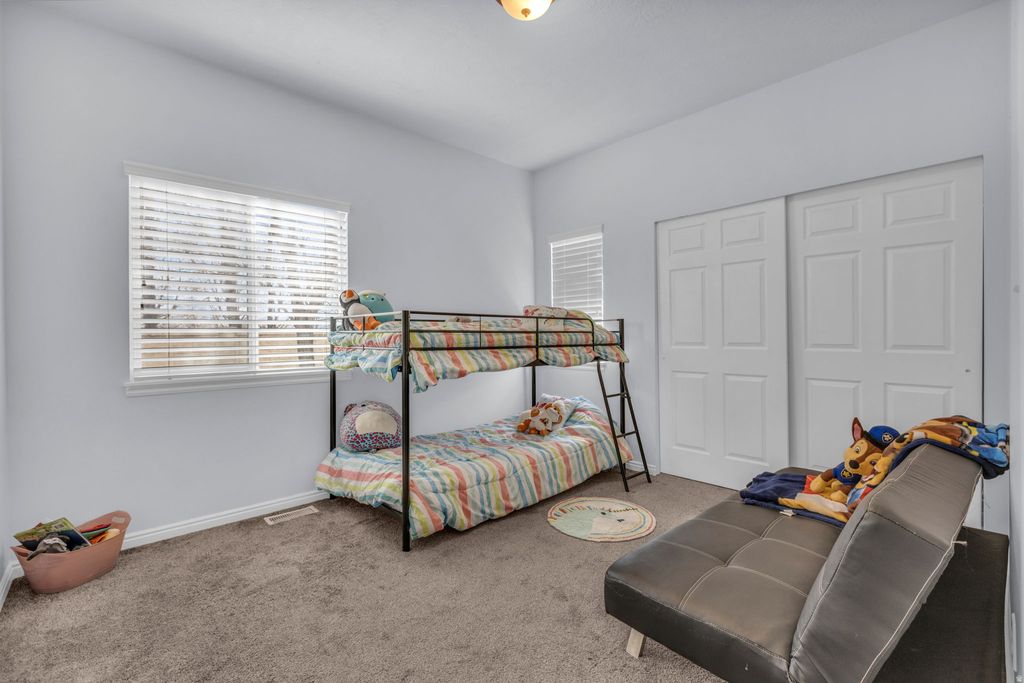 Two spacious primary suites-including a larger, private retreat downstairs-plus vaulted ceilings and natural light that fills every corner make this Wyngate Park home stand out. Thoughtfully designed with an open layout and flexible living spaces, it's built for both comfort and versatility from day one. From the moment you walk in, this home feels bright, open, and inviting with soaring vaulted ceilings, abundant natural light, and a functional open floor plan. The kitchen features granite countertops and flows seamlessly into the main living areas-perfect for both everyday living and entertaining. Offering 3 bedrooms and a den, 4 full bathrooms, 2 spacious family rooms, and a dedicated den/office, there's room to live, work, and host with ease. The main-level primary suite is a true retreat, complete with a walk-in closet and a separate jetted tub and shower-ideal for unwinding at the end of the day. The fully finished basement expands your options with a second primary suite, an additional bedroom, a large family room, and a spacious laundry area-perfect for guests, multi-generational living, or added privacy. Enjoy all that Wyngate Park has to offer, including a fenced pool, playground and picnic area, and basketball court. The HOA even covers cable and internet, adding extra value and convenience. Centrally located near shopping, dining, South Jordan Park, and miles of walking and biking trails-with quick freeway access-this home delivers the perfect blend of comfort, flexibility, and location.