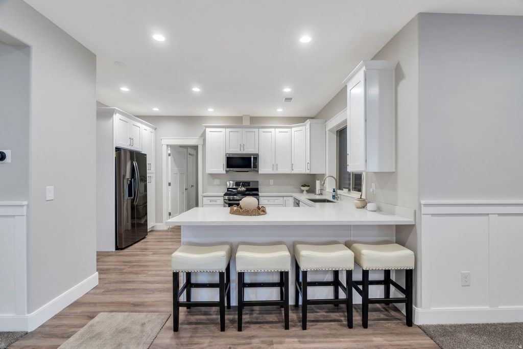 Highland is still one of the most sought-after pockets in Utah-and it's easy to see why with homes like this. Quality always wins! Your own private park in the heart of Highland. This isn't just a house; it's the retreat you've been waiting for. Meticulously updated from top to bottom, this Highland gem combines timeless elegance with peace of mind. Main Floor Luxury: Step onto genuine hardwood floors and into a space flooded with natural light. Every window offers a curated view, framing the beauty of our mountains. The heart of the home features a large kitchen with custom cabinetry and a great room with a stunning 2-way fireplace that adds warmth and character to your daily living. With complete main-floor living, everything you need is right at your fingertips. The Ultimate Guest or Multi-Gen Suite: The walk-out basement is a showstopper. Featuring a full second kitchen and a massive family room, this space is essentially brand new and barely lived in. Whether it's for long-term guests, entertaining, or a dream hobby space, the storage capacity here is truly unparalleled. An Outdoor Oasis: The grounds feel like a personal park. Professionally landscaped with soothing bubble fountains in both the front and back, you can enjoy the mountain air from the expansive front porch or the covered back deck. As the sun sets, enjoy the patio's gas firepit for the perfect Utah evening. Space for Every Toy: Storage doesn't stop inside. This home features a large 2-car garage plus an extra-deep 3rd-car bay and the wide RV pad everyone is looking for. Pride of ownership and excellence in design shine through every detail. Welcome home.