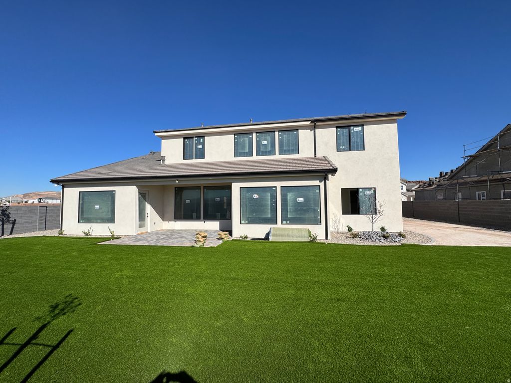 Brand new custom two story home in the exciting Finley Farms neighborhood. Located within the Crimson Cliffs boundaries featuring one of the most private yards within Washington Fields. Fantastic floor plan with spacious great rooms, two bedrooms + an office on the main floor and 4 bedrooms with a second living room on the second floor. Kitchen boasts GE Cafe appliances with side by side Fridge/Freezer combo and double ovens. Garage can host 3 cars comfortable with additional RV parking on the side of the house. Quick and easy access to growing shopping commercial area.