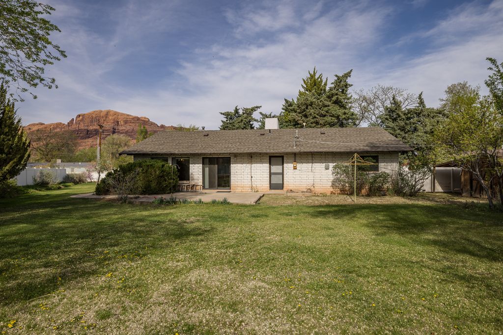 OPPORTUNITY AWAITS! Set on nearly an acre on Moab's sought-after westside, this property offers space, setting, and unmatched potential. With 4 bedrooms, 2 baths, and 1,621 square feet, the existing home is a canvas ready for your vision, while the expansive landscaped yard invites endless possibilities, outdoor entertaining, creative landscaping, or future expansion into a small subdivision within the R2 zoning. Seller is willing to assist with flooring upgrades. Just minutes from downtown, Swanny City Park, and the Moab Recreation & Aquatic Center, this is where convenience, lifestyle, and opportunity converge in one of Moab's most desirable areas. Whether you're imagining your dream home, a thoughtful redesign, or a smart investment, this property provides the foundation to create something truly exceptional.