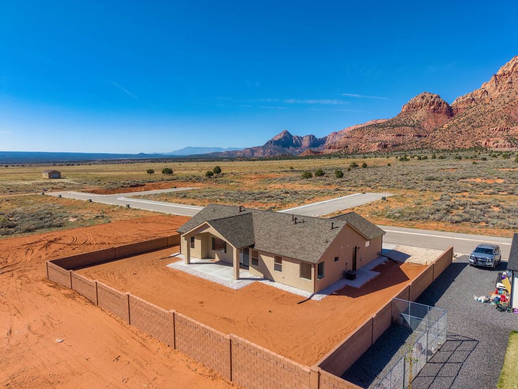 **Seller financing is an option with 20% down**Introducing a stunning new home in the prestigious Heights Subdivision! This thoughtfully designed 3-bedroom, 2-bathroom home offers breathtaking red rock mountain views, a spacious 2-car garage, and RV parking for all your toys. The gourmet kitchen will include custom white cabinetry, quartz countertops, and stainless-steel oven range and dishwasher, perfect for cooking, baking, and entertaining. Upgraded lighting fixtures highlight the abundant natural light, while durable LVP flooring flows through the main living areas and cozy carpet creates comfort in the bedrooms. The vaulted primary suite is a true retreat, with windows framing gorgeous views and a luxurious ensuite featuring dual vanities, a designer shower, and a relaxing soaker tub. Outside, the partially landscaped yard with fencing provides a private oasis for family, pets, and gatherings. Nestled at a 5,000 ft elevation, this home is surrounded by stunning terrain and a favorable climate. Located just off the edge of town, you'll be close to riding and hiking trails, 5 National Parks, Sand Dunes, and within a short drive to Lake Powell (90 minutes), the Grand Canyon (60 minutes), Zion (45 minutes), Kanab (30 minutes), and St. George (40 minutes). Make this extraordinary home yours today.
