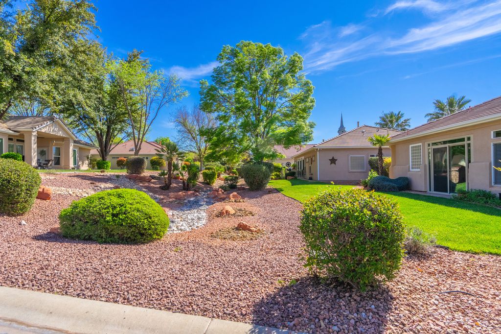 Luxury Living in Green Springs - Stunning Views & Golf Access Welcome to your quiet cul-de-sac retreat! This beautiful gated rambler offers the perfect mix of serenity and accessibility. Enjoy stunning Pine Valley Mountain views from your private enclosed sunroom or take a short walk to the golf clubhouse. Highlights: Prime Location: Minutes from shopping, dining, and easy freeway access. Home Features: Extra-wide garage, full water softener, and open-concept living. Appliances inc: washer, dryer , refrigerator. Resort Amenities: HOA covers full yard care & cable, plus access to indoor/outdoor pools, pickleball, tennis, and a full gym. Experience the ''Green Springs lifestyle'' where luxury meets convenience. Schedule your tour today!