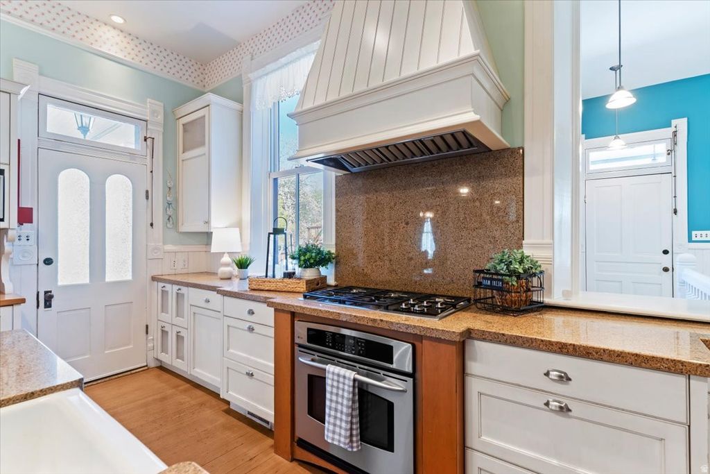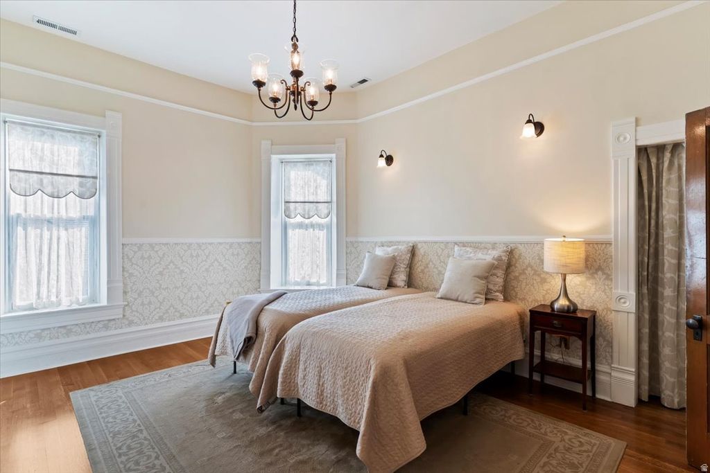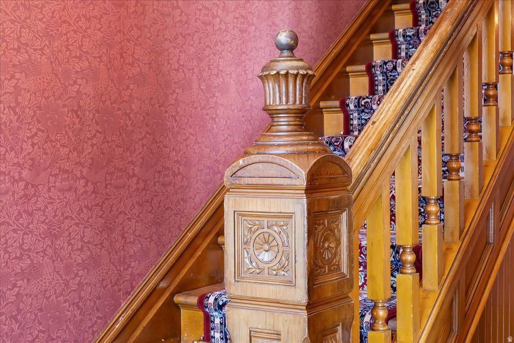 CLICK THE "TOUR" FOR CINEMATIC VIDEO. Step into a remarkable piece of Kaysville's rich heritage with the historic John G.M. Barnes House-an elegant late-19th-century residence that seamlessly blends architectural distinction with deep local significance. Originally constructed in 1884 and thoughtfully expanded in 1896, this striking brick home showcases refined Victorian design, attributed to noted local architect William Allen. While rich in history, the home offers the comfort and functionality of a well-loved and thoughtfully updated family residence. Extensive renovations have been completed in accordance with historic preservation standards approved by the Utah State Historic Preservation Office, ensuring authenticity while enhancing livability. Recent improvements include updated plumbing and electrical systems, significant masonry restoration, all seven chimneys rebuilt, and a new roof complemented by copper gutters, scupper boxes, and downspouts on both the home and garage. Inside, meticulous preservation continues with stunning hand screen-printed wallpaper from the renowned Bradbury & Bradbury studio-materials that are no longer available-adding to the home's rare and irreplaceable character. In addition to the main residence, the property features a spacious detached garage with workshop and storage, epoxy floors, and a fully equipped apartment or additional living space complete with a kitchen, bathroom, laundry & separate office or studio- this addition is ideal for guests, extended family, or potential rental income. Step outside to a thoughtfully designed outdoor living area perfect for entertaining, featuring an outdoor kitchen, pizza oven, fireplace, garden boxes, swing set, and a private patio retreat. Nestled in the heart of Kaysville's historic district, this exceptional property is just steps from downtown shopping, dining, parks, and entertainment, as well as top-rated Davis County schools, including Davis High School. This is more than a home-it's a rare opportunity to own a true landmark property where timeless design meets meaningful history Square footage figures are provided as a courtesy estimate only and were obtained from appraiser measurement . Buyer is advised to obtain an independent measurement.