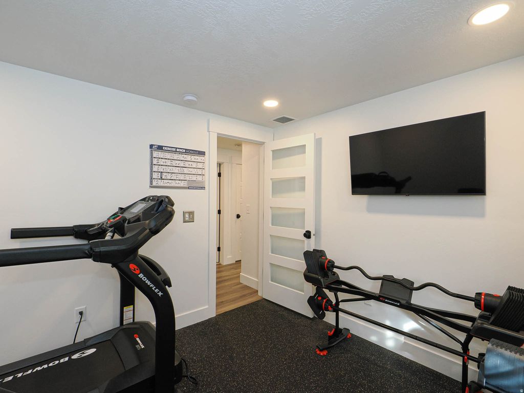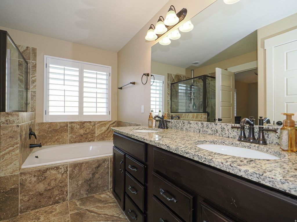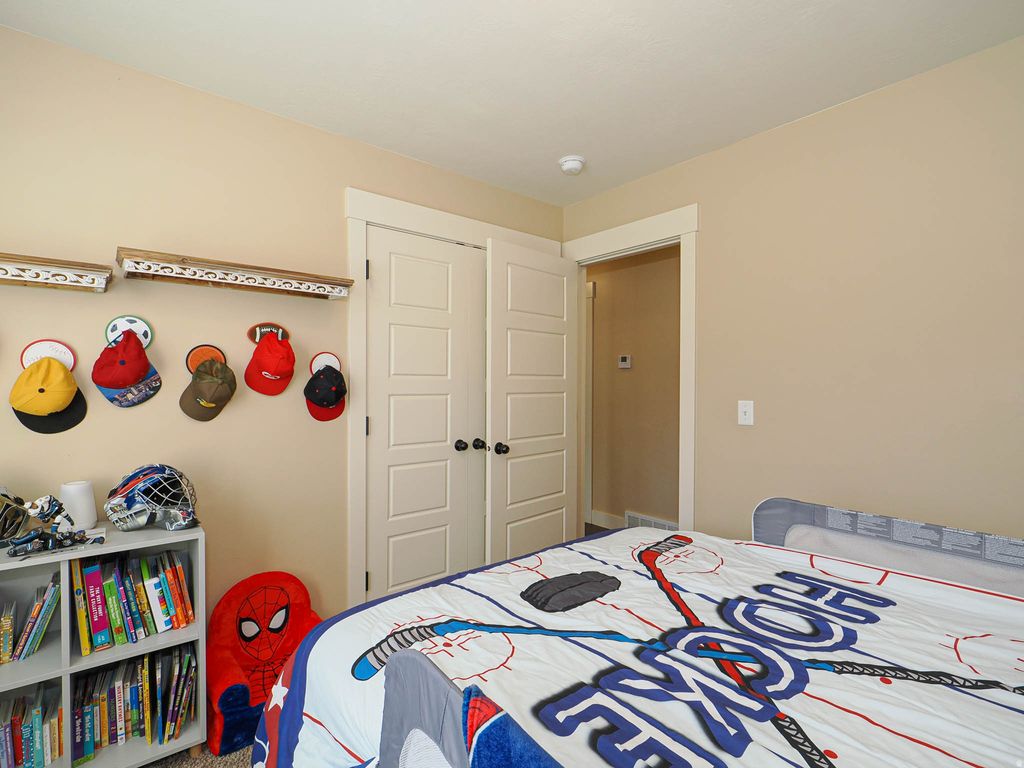 This stunning rambler features a spacious, open layout and a park-like yard with a covered cement patio, beautiful trees, custom playground, and PICKLEBALL/BASKETBALL SPORT COURT fully equipped with lighting for night games! | Interior upgrades include vaulted ceilings, plantation shutters, granite countertops, & custom lighting | Large kitchen with HUGE pantry, stainless steel appliances, staggered wood cabinetry, and island | Awesome primary suite with tray ceiling and large bathroom with double sinks and separate tub/shower | Huge loft over the garage makes for a perfect game room and second living area | Two additional bedrooms in basement along with a home gym, bathroom with walk-in shower, and huge area for storage and a future great room | Amazing location on a quiet cul-de-sac with incredible mountain views.