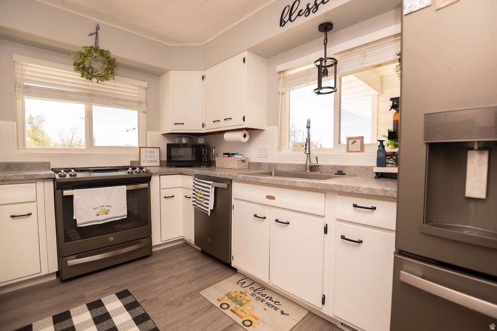 Step into timeless charm with this all-new, one-level farmhouse look home. Meticulously remodeled from top to bottom, this immaculate residence blends classic appeal with modern comfort for easy, stylish living. What you'll love: - All-new renovation inside and out: fresh finishes, modern moldings, new doors, and updated tile throughout - Open, one-level living with a warm, inviting farmhouse aesthetic - Brand-new essentials: furnace, water heater, and central air for year-round comfort - Bright, contemporary kitchen with new appliances - Plantation shutters that add curb appeal and adjustable light control - Exterior highlights: new cement, lush sod, curbing, and sprinklers for instant landscape perfection - Outdoor entertaining ready: spacious patio for gatherings - Practical extras: Conex storage on-site for added utility and a new fence for privacy and security Property features: - Farmhouse look with modern, high-quality finishes - One-level living for convenience and accessibility - New cement driveway and walkways - Fresh sod, curbing, and sprinkler system - Patio for outdoor entertaining - New furnace and water heater - Updated moldings, doors, and tile - New appliances in a bright, updated kitchen - Central air conditioning - Plantation shutters - Conex storage container - New fencing for privacy.