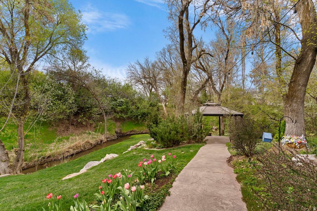 Nestled on a quiet cul-de-sac in one of Kaysville's most desirable neighborhoods, this exceptional property offers privacy, elegance, and versatility on nearly half an acre. The backyard is a private retreat-resembling a park with a year-round creek, tranquil waterfall, charming gazebo, and inviting spaces for relaxation and entertaining-just steps away from a park and walking path. Inside, oversized windows fill the home with natural light and frame breathtaking sunset views. Tall ceilings, plantation shutters, and a seamless open layout create refined comfort throughout. The main level features a luxurious primary suite and private office. The daylight basement is designed for elevated living, with a separate entrance, full kitchen, spacious gathering areas, and radiant in-floor heating. Enjoy outdoor living with a generous deck and covered patio. Additional highlights include a private loft with 3/4 bath and separate entrance, extended two-car garage, and small third garage shed in back. Located near Station Park, great schools and quick access to freeways including the new West Davis Corridor. A rare blend of setting and warmth that will quickly feel like home.