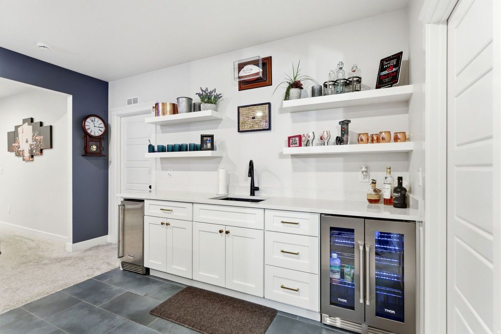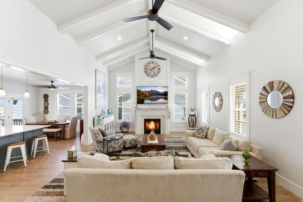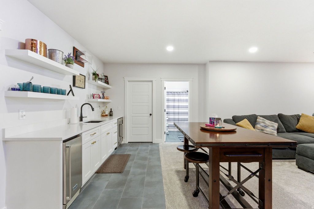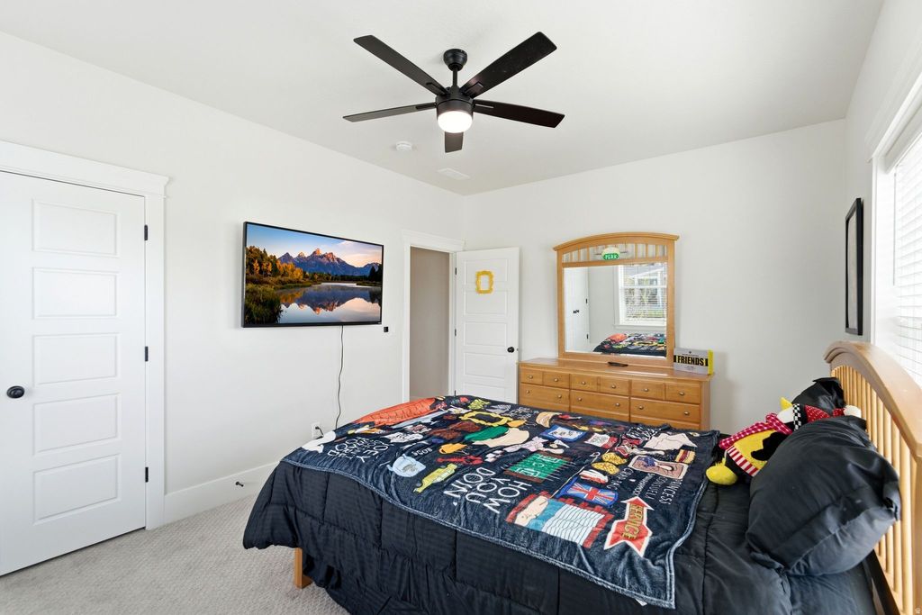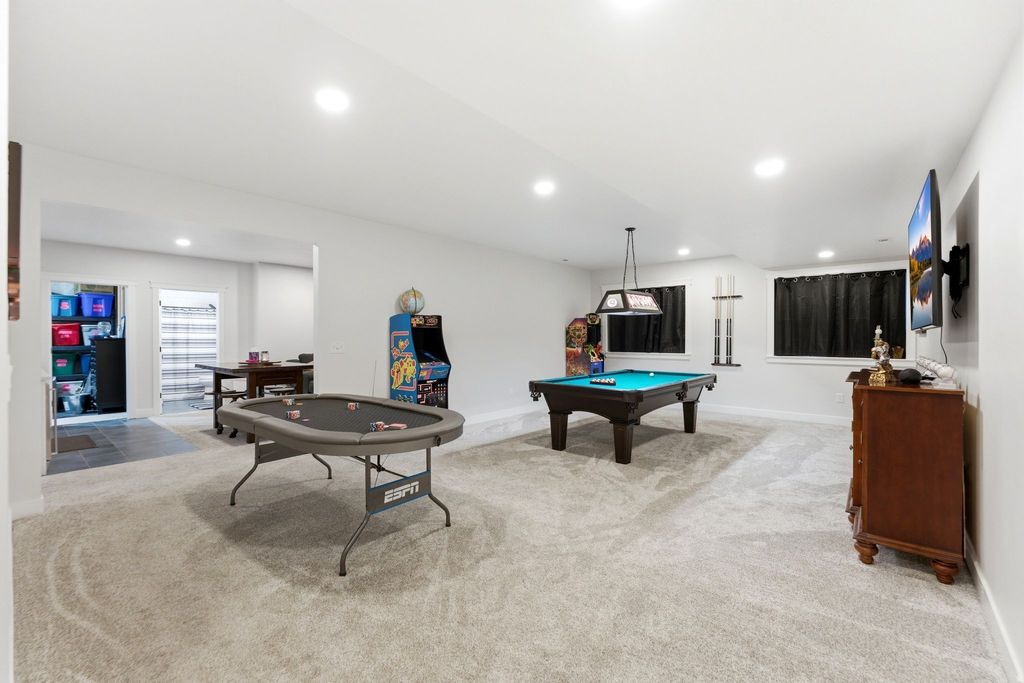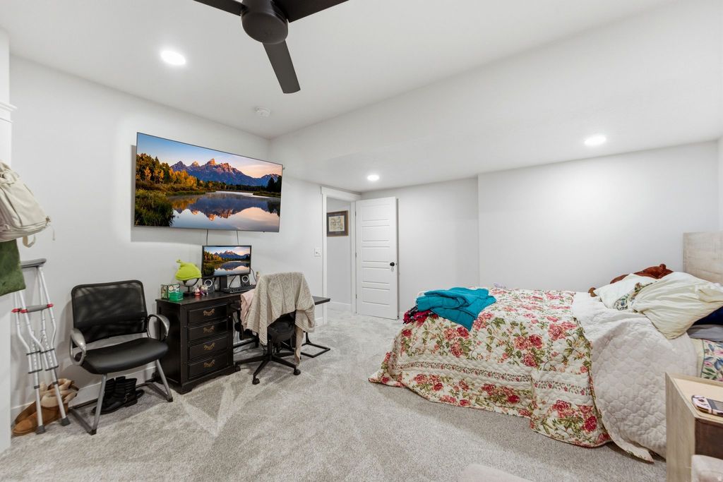 This stunning residence in the heart of Daybreak's Upper Villages offers the perfect blend of modern farmhouse design and functional luxury. Situated on a spacious corner lot, the Clearwater Farmhouse II floor plan by Destination Homes delivers an open, airy feel with soaring vaulted ceilings and designer beam accents. The gourmet kitchen serves as the centerpiece, featuring high-end cabinetry, sleek countertops, and a layout that flows effortlessly into the family room-ideal for hosting gatherings. For those who work from home, the dedicated main-floor office provides a quiet retreat with its own private exterior entrance, offering a professional touch for client meetings or a peaceful workspace. Main Level: Includes a sprawling primary suite with a spa-like bathroom and a walk-in closet, plus a spacious mudroom to keep the home organized. Upstairs: Three additional bedrooms provide plenty of room for family or guests. Basement: The massive basement offers over 2,000 sq. ft, one large bedroom, game room , theater space (TVs are included) large storage areas The oversized 3-car garage is a hobbyist's dream, featuring extended height, extra depth, and professional epoxy flooring. Located just blocks from the upcoming Watercourse, this home places you minutes from Aspen Elementary, neighborhood parks, pickleball courts, and local coffee shops. Enjoy the signature Daybreak lifestyle with miles of trails, community pools, and beautiful mountain views right from your front door.