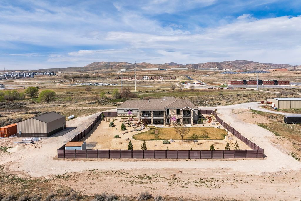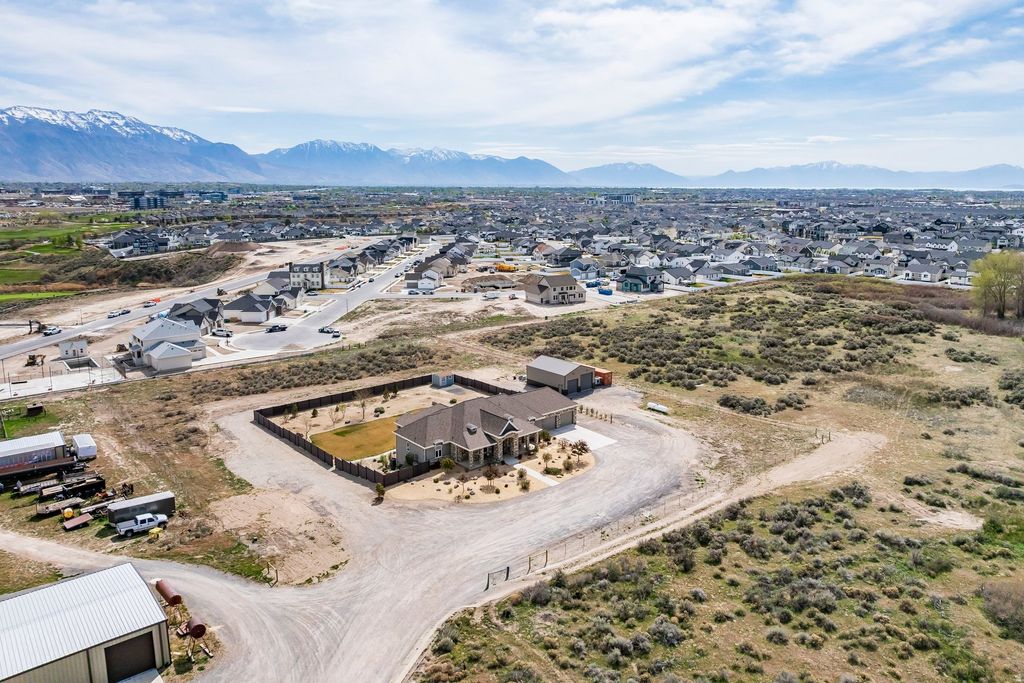 Stunning custom home on 2.81 acres in Lehi offering space, privacy, and equestrian rights. Built in 2017, this beautifully designed 5,998 sq ft residence combines modern finishes with functional living, all set against breathtaking mountain views. This home has a private drive (no traffic), ideally located between Provo and Salt Lake with quick freeway access and close proximity to Thanksgiving Point, Silicone Slopes, shopping and restaurants. The main level features an open-concept layout with a striking floor-to-ceiling fireplace, expansive windows, and abundant natural light. The gourmet kitchen is equipped with custom cabinetry, granite and quartz countertops, a large island, induction cooktop, prep sink, a hidden office, and walk-in pantry with convenient Costco/grocery door for easy unloading. Enjoy two office spaces or use one as a living room. Adjacent dining and living areas create a seamless flow ideal for entertaining. The home offers 4 spacious bedrooms (with potential for a 5th using the basement game room) and 4.5 bathrooms, including a well-appointed primary suite with private deck, a luxurious spa-like bath (including a walk-in shower and large soaker tub) and a generous, custom walk-in closet. Wide stairways and hallways add to the thoughtful design and livability. The fully finished walk-out basement includes a second kitchen, large game room, two spacious bedrooms, an exercise/craft room, and second laundry-perfect for entertaining or multi-generational living. Enjoy outdoor living with two decks and two covered patios, an east-facing backyard ideal for shaded summer evenings, and front-facing orientation that helps with winter snow melt. Take in incredible mountain views and even watch Thanksgiving Point fireworks right from your property. The backyard features Trex privacy fencing, storage shed and low-maintenance water-wise landscaping, with automatic sprinklers and fertilizer system. Equestrians and outdoor enthusiasts will appreciate the nearly 3 acres of usable land, with proximity to Jordan River Parkway trails, equestrian parks, and a nearby agricultural center, plus inclusion in a future equestrian-focused community with planned trails and riding arena. The property includes a 2-car attached garage, plus a 30x40 detached shop with RV door and 240V power, ideal for hobbies, storage, or workspace. Designed for comfort and efficiency, this home features two furnaces, two AC units, two water heaters, water softener, smart thermostat, whole-home humidifier, large storage room, walk-in safe, gas fireplaces, two laundry rooms, fiber optic internet, security system, and a full fire sprinkler system. Utilities include shared well, septic system, propane, city electricity, and trash service. Well cared for by the original owners, this is a rare opportunity to own a newer home with acreage, equestrian potential, and high-end features-offering the perfect balance of rural living and city convenience.