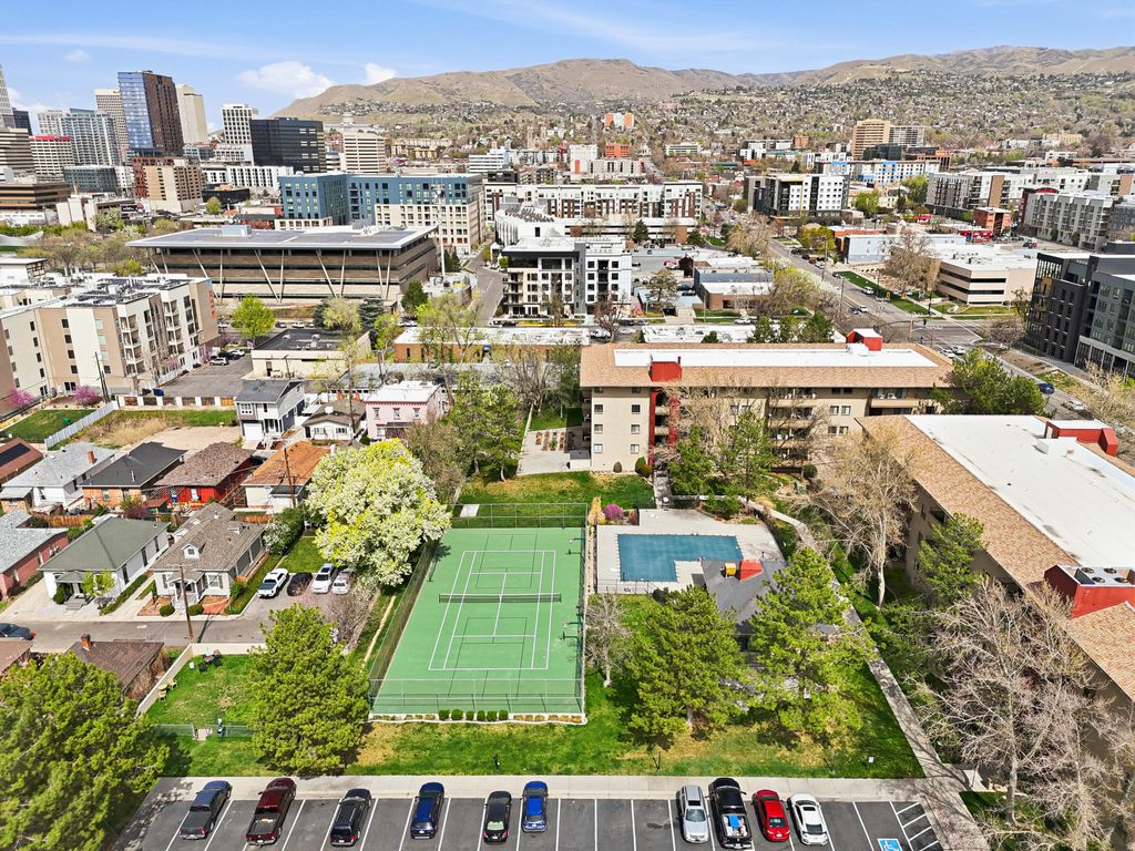 Downtown Living, Elevated. Welcome to one of downtown Salt Lake City's most sought-after addresses - where the energy of the city meets the serenity of the mountains. This stunning 2-bedroom, 2-bathroom condo has been thoughtfully updated with new countertops, kitchen appliances, new flooring, and crisp designer paint, creating a move-in ready retreat that feels brand new. Step onto your private east-facing balcony - freshly finished with newer Trex-style decking - and drink in sweeping Wasatch views, a rare luxury in this price range. Inside, every detail has been curated for the discerning urban professional who refuses to compromise on quality or convenience. The amenities deliver: pool, tennis and pickleball courts, coveted garage parking with additional storage, and digital keypad entry - all just steps from your door. Google Fiber connectivity keeps you seamlessly connected. Water, sewer, and garbage are covered, so you can focus on living, not logistics. Positioned at 530 S. 400 E., you're moments from the finest dining, nightlife, arts, and trails the city has to offer. 896 square feet of pure downtown sophistication.