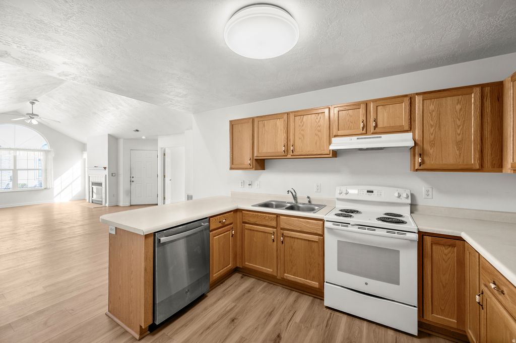 Beautiful Single Level Living 2 bedroom, 2 bath condo in desirable 55+ community offering comfortable stair free living and attached 2 car garage. The open floor plan features vaulted ceilings. Abundant natural light and a cozy gas fireplace that creates a warm and inviting living space. Brand new carpet in the bedrooms and luxury vinyl plank flooring throughout the main living areas gives the home a fresh, updated feel. The spacious primary suite includes a private en-suite bathroom, while the second bedroom offers flexible use as a guest room, office or den. Enjoy relaxing outdoors on the private fenced concrete patio. All appliances are included for a true move-in ready convenience. Community amenities include a clubhouse, pool, exercise room and plenty of guest parking, all conveniently located near shopping, dining and freeway access.