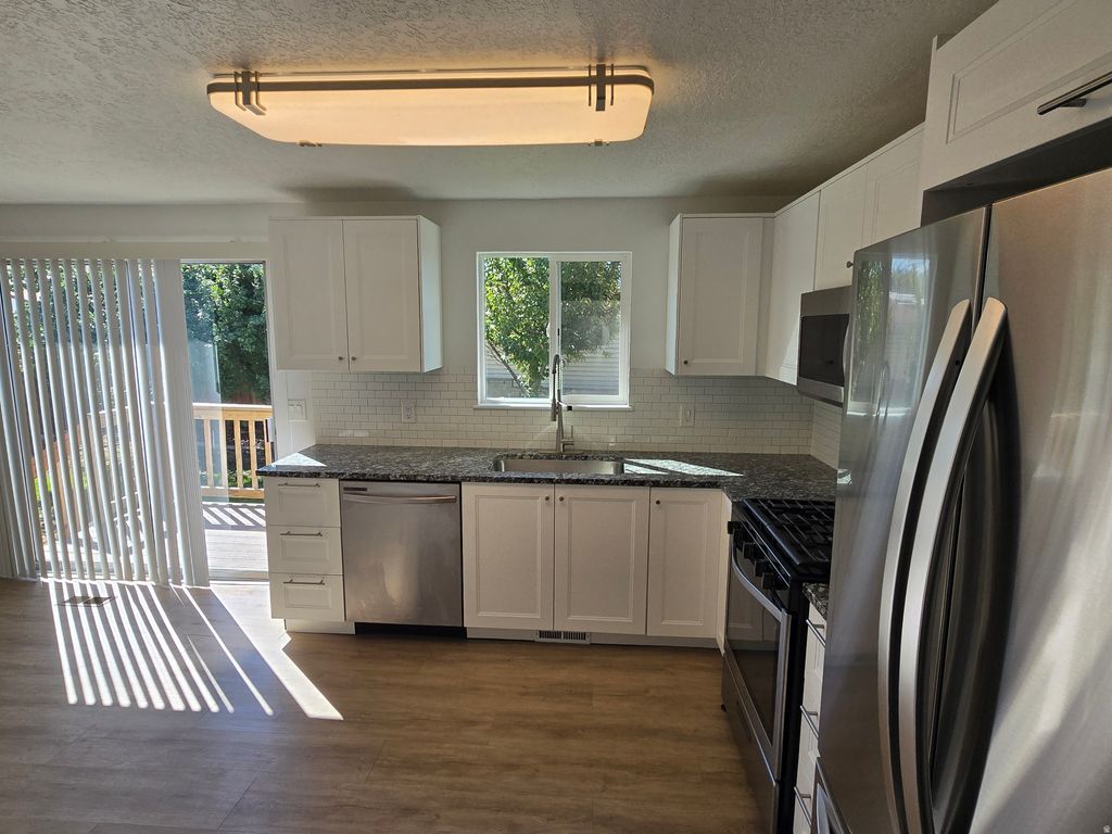 Charming, Updated Home with a large fenced private backyard in a Quiet Neighborhood. This cozy home features numerous updates completed in 2021. The remodel included a beautiful new kitchen with Pergo flooring, fresh carpet throughout most of the home, and updated bathrooms. Most windows were replaced, and a new condenser unit was installed to provide efficient air conditioning. along with a new water heater. The extra room downstairs could easily be made into a 5th bedroom. 2 large family rooms make for great entertaining. The exterior received new cement board siding, fresh paint, and updated outdoor lighting for great curb appeal. Inside, the upstairs family room, hallway, and kitchen and downstairs have just been freshly painted, creating a bright and welcoming atmosphere-perfect for entertaining. The refrigerator is included. Square footage figures are provided from Salt Lake County records; buyers are advised to verify all information.