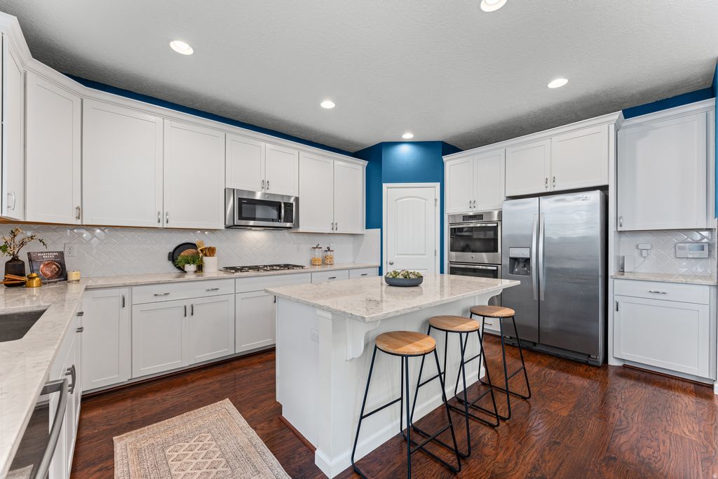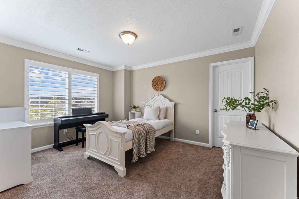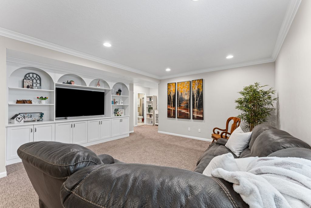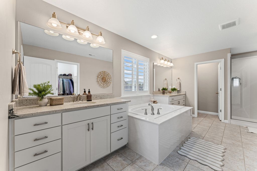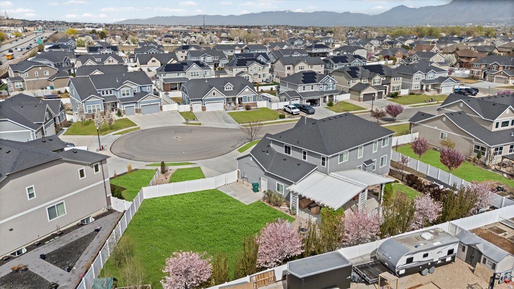 WELCOME TO THE NEIGHBORHOOD!!! This Riverton home truly checks all the boxes with 5 bedrooms, 4 bathrooms, and a bright, open layout filled with natural light. The great room features beautiful vaulted ceilings that make the space feel even bigger, and plantation shutters throughout add a clean, finished look. The kitchen is both functional and stylish with double ovens, a touch faucet, and a modern single bowl sink. The backyard is set up perfectly for relaxing or entertaining. You'll love the swim spa from Bullfrog Spas that can be used as a hot tub or for swimming, along with a gas firepit for cozy nights. The garden boxes and flower beds are all on drip systems, so everything stays looking great without the extra work. The 4 car garage includes a 220V outlet for EV charging, and there are built in outlets and switches for roofline holiday lights, which makes decorating so much easier. You're also in a great location close to shopping, dining, and everyday conveniences, with easy freeway access for a quick commute-while still being tucked into a quiet Riverton neighborhood.