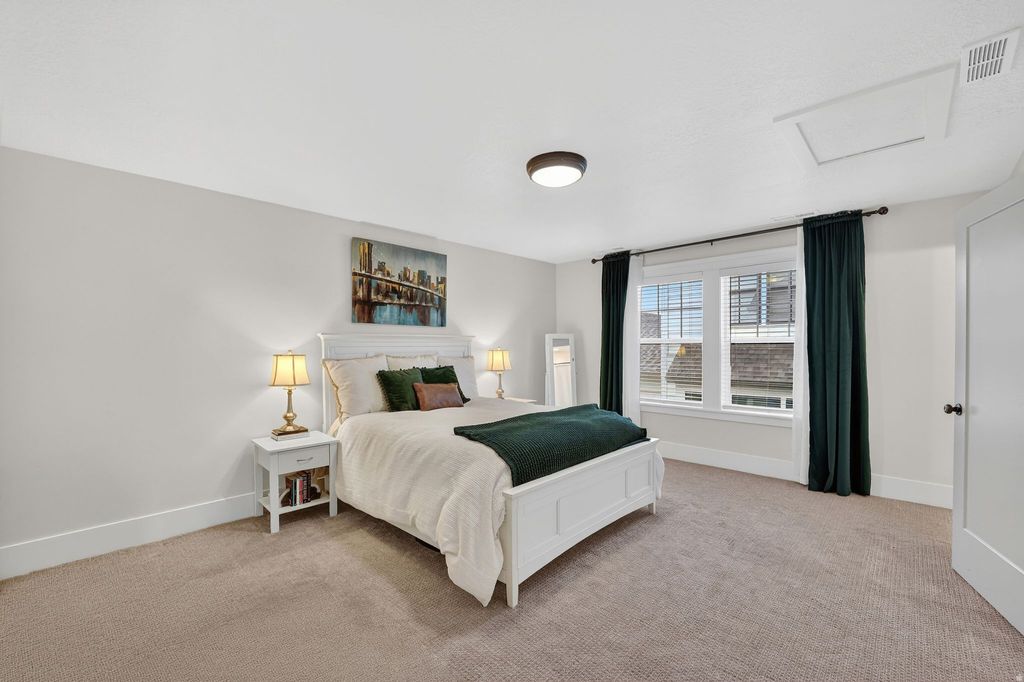 Stunning former model home loaded with high-end upgrades and designer finishes throughout! This beautifully appointed home features a spacious open-concept floor plan, perfect for both everyday living and entertaining. Enjoy the convenience of three luxurious primary suites, including a grand main-level primary retreat, plus two laundry rooms for ultimate functionality. The fully finished basement is an entertainer's dream, complete with a wet bar, theater room, expansive family room, and thoughtfully finished storage space under the stairs. The fully finished 3-car garage is equipped with a dedicated 220V outlet on its own panel, a water spigot, and a 20-amp line to the home office-ideal for work or hobbies. Located within walking distance to incredible HOA amenities, including a clubhouse pavilion, pools, fitness centers, paddle boat rentals on the lake, pickle ball courts, ping pong tables, playgrounds, and a large fire pit perfect for gatherings. Conveniently situated just minutes from Mountain View Corridor, with easy access to shopping, dining, and more. This home truly has it all-style, space, and an unbeatable lifestyle! Buyer to verify all.